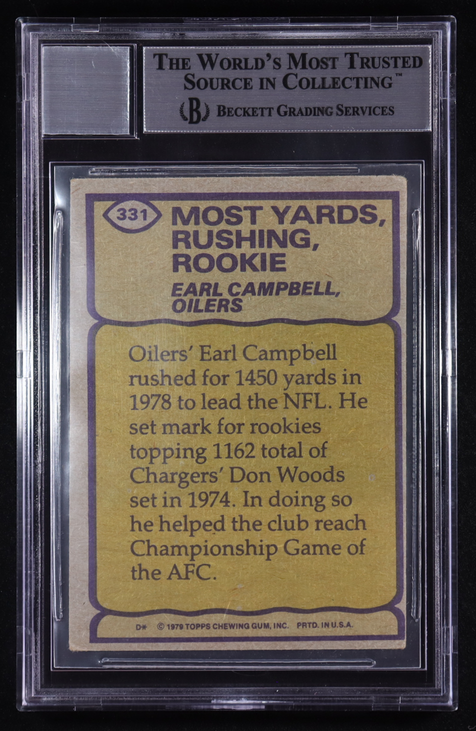 Earl Campbell Signed 1979 Topps Record Breaker #331 RC (BGS | Autograph Graded BGS 10)