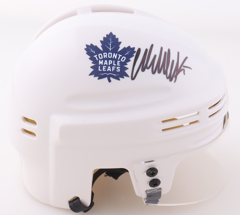 Toronto Maple Leafs mini helmet. Hand-signed by Wendel Clark.