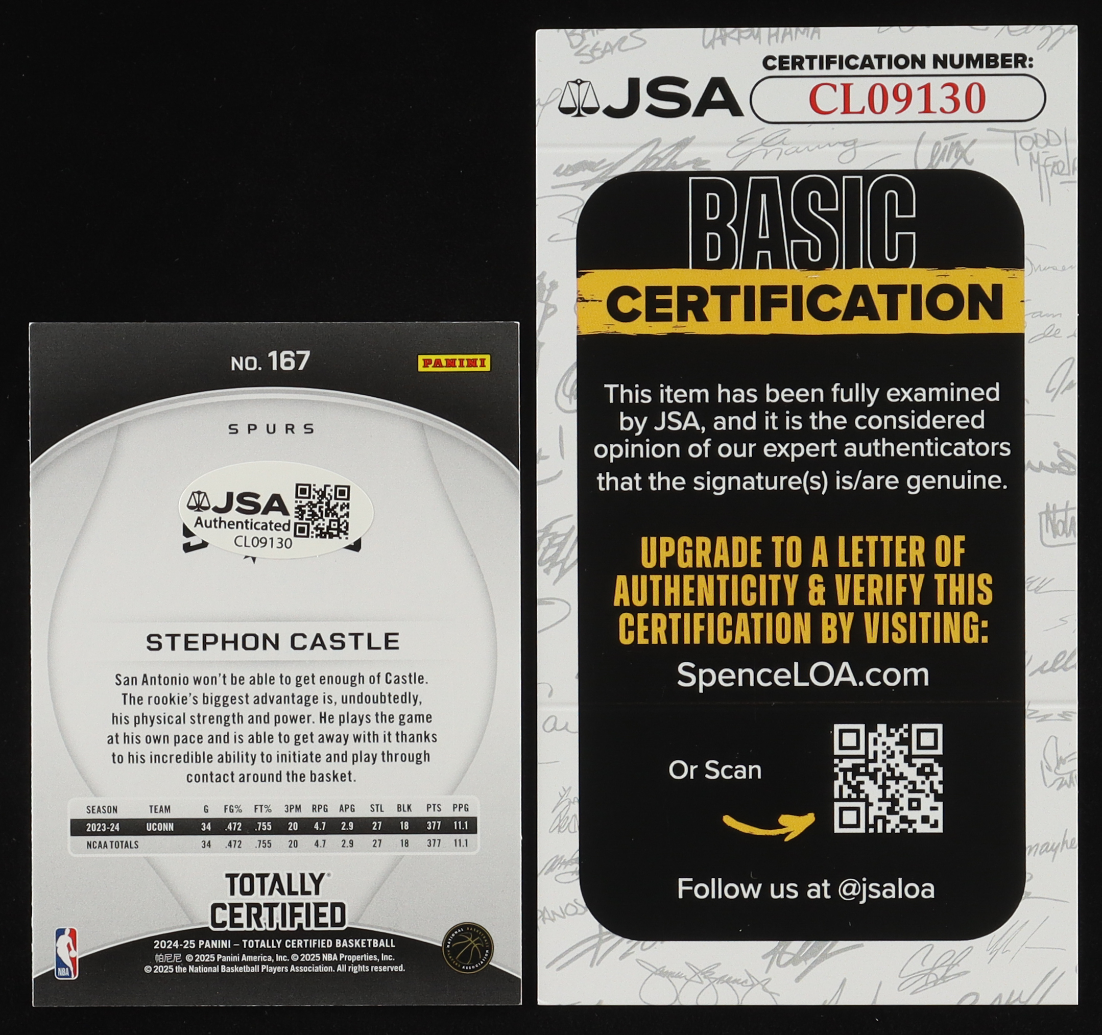 Stephon Castle Signed 2024-25 Panini Totally Certified #167 RC (JSA)