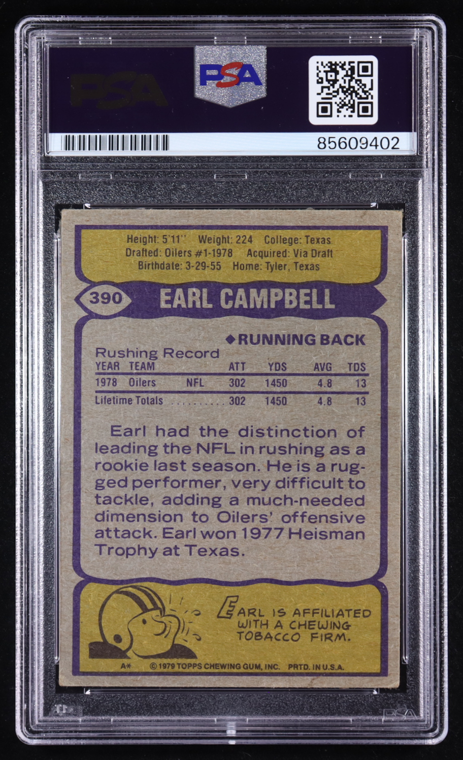 Earl Campbell Signed 1979 Topps #390 RC (PSA)
