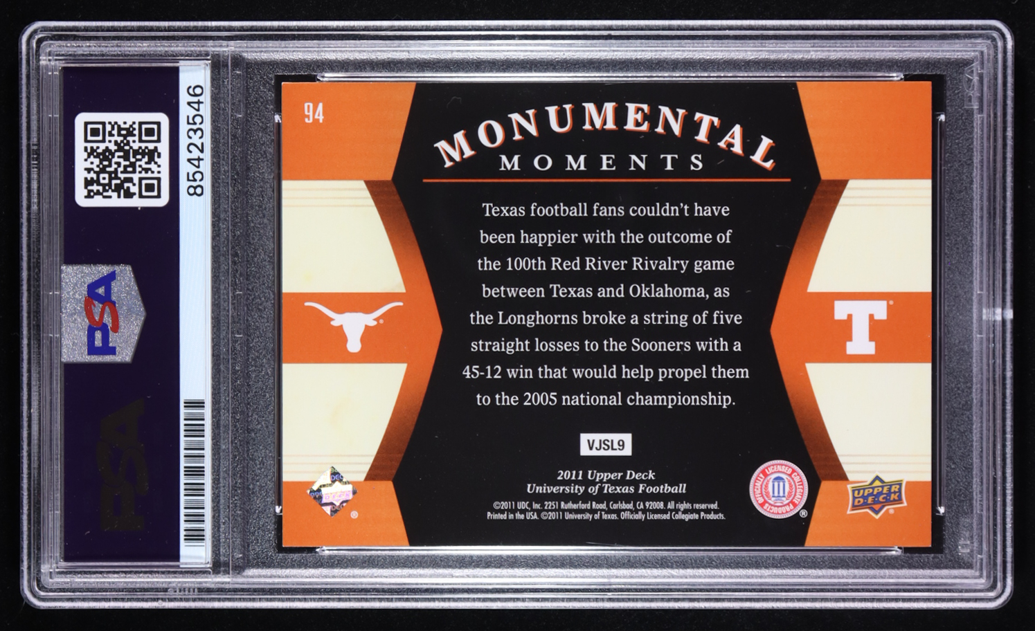 Vince Young Signed 2011 Upper Deck Monumental Legends #94 (PSA)