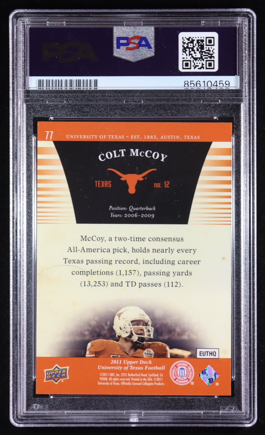 Colt McCoy Signed 2011 Upper Deck #77 (PSA)
