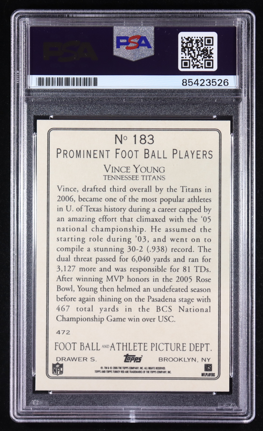 Vince Young Signed 2006 Topps Turkey Red Prominent Foot Ball Players #183 RC (PSA)