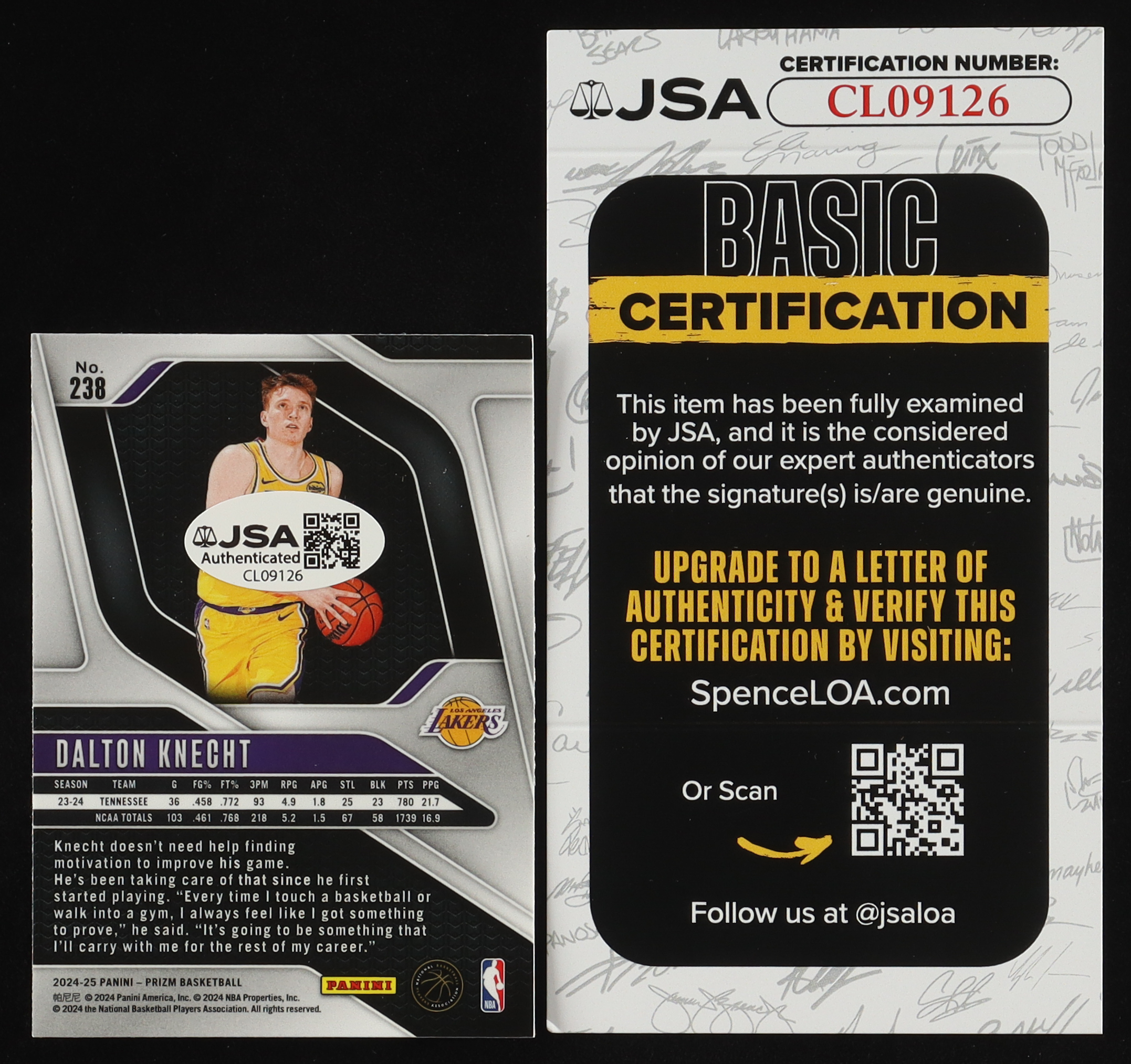 Dalton Knecht Signed 2024-25 Panini Prizm #238 RC (JSA)