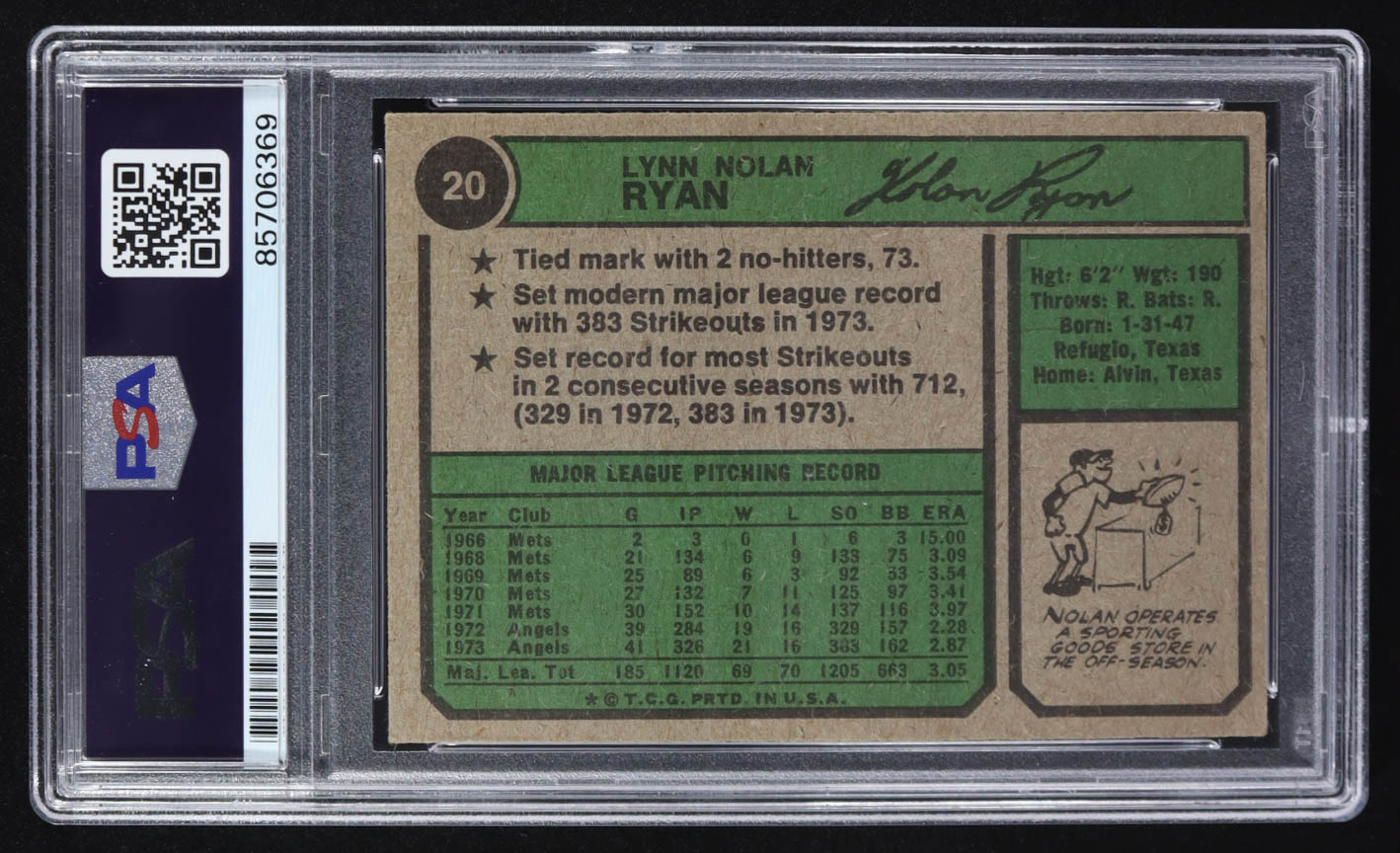 Nolan Ryan Signed 1974 Topps #20 Inscribed "108.5 M.P.H." (PSA | Auto Grade 10)