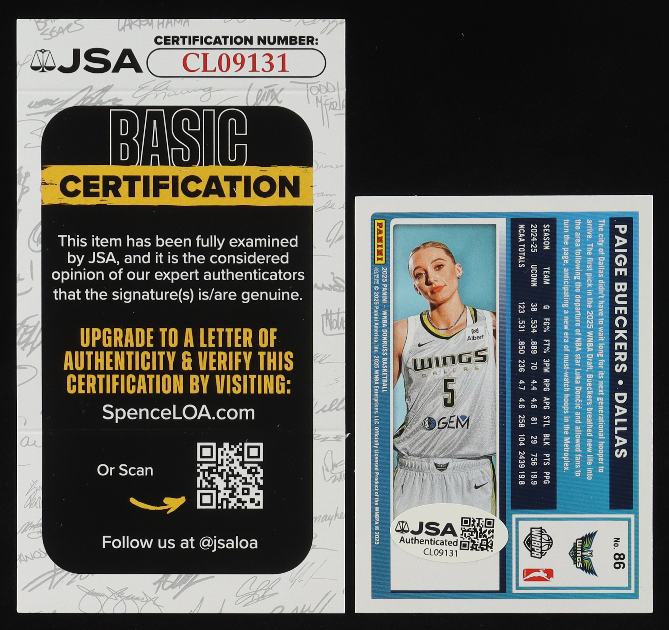Paige Bueckers Signed 2025 Donruss Rated Rookie #86 RC (JSA)