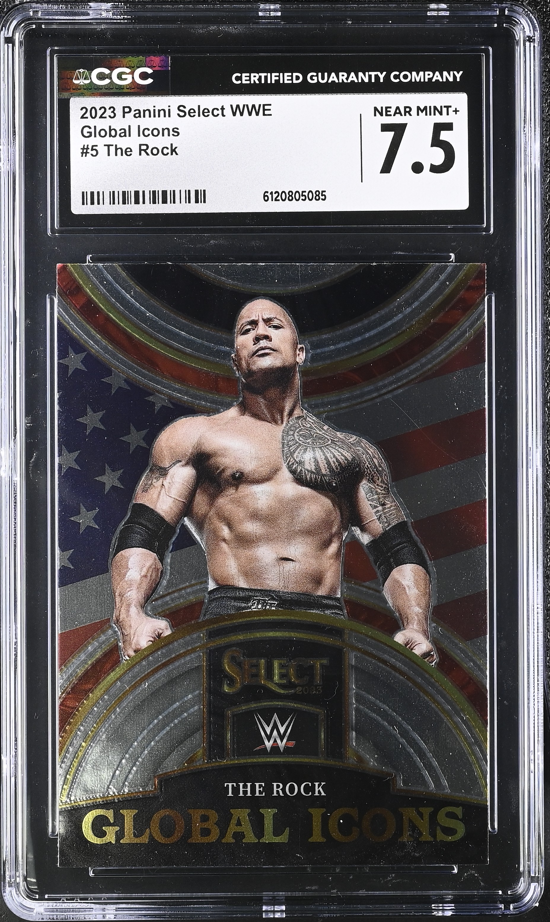 The Rock 2023 Panini Select WWE Global Icons #5 (CGC 7.5)