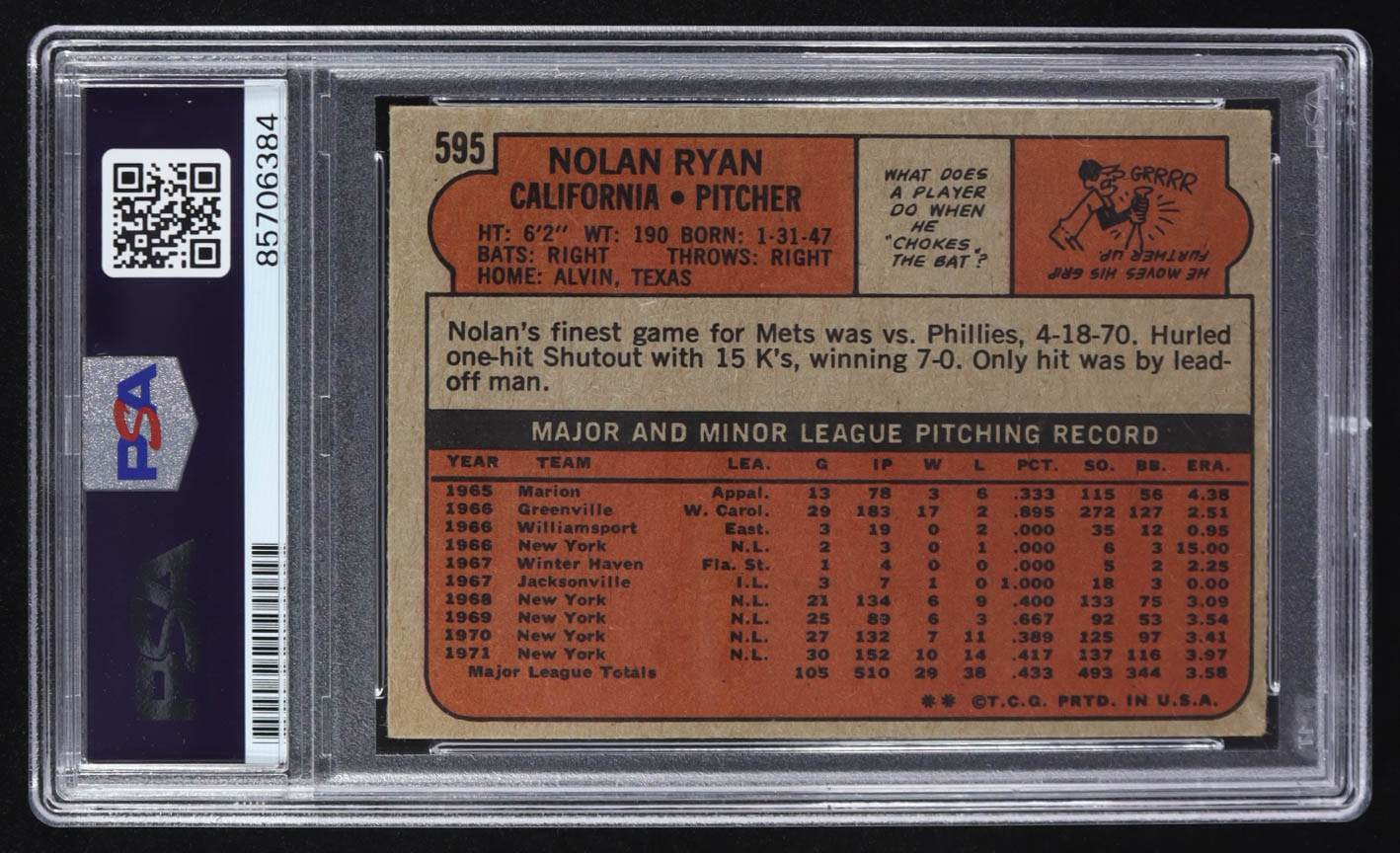 Nolan Ryan Signed 1972 Topps #595 Inscribed "108.5 M.P.H." (PSA | Auto Grade 10)
