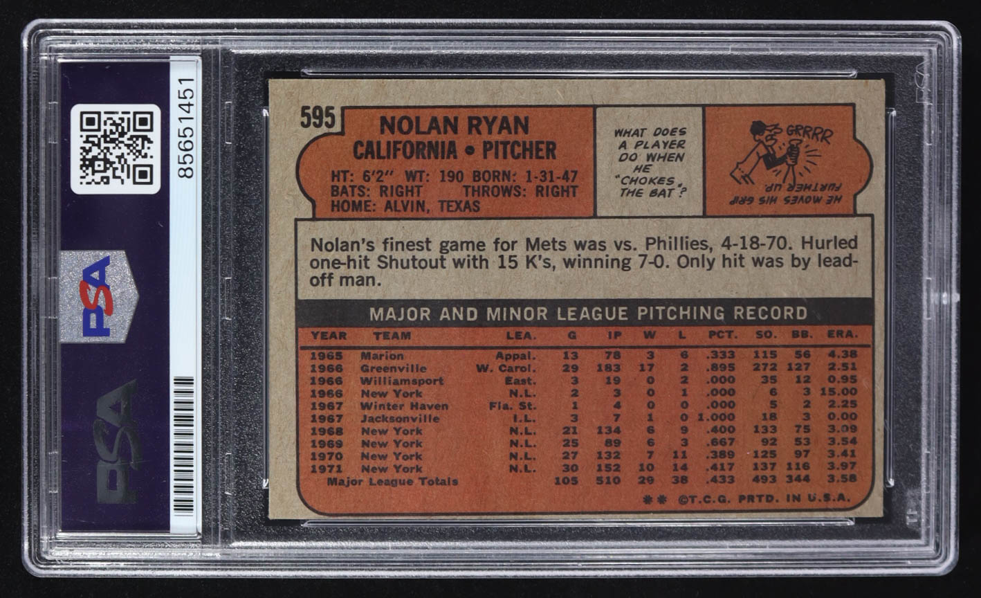 Nolan Ryan Signed 1972 Topps #595 Inscribed "324 Wins / 5,714 K's" (PSA | Auto Grade 10)