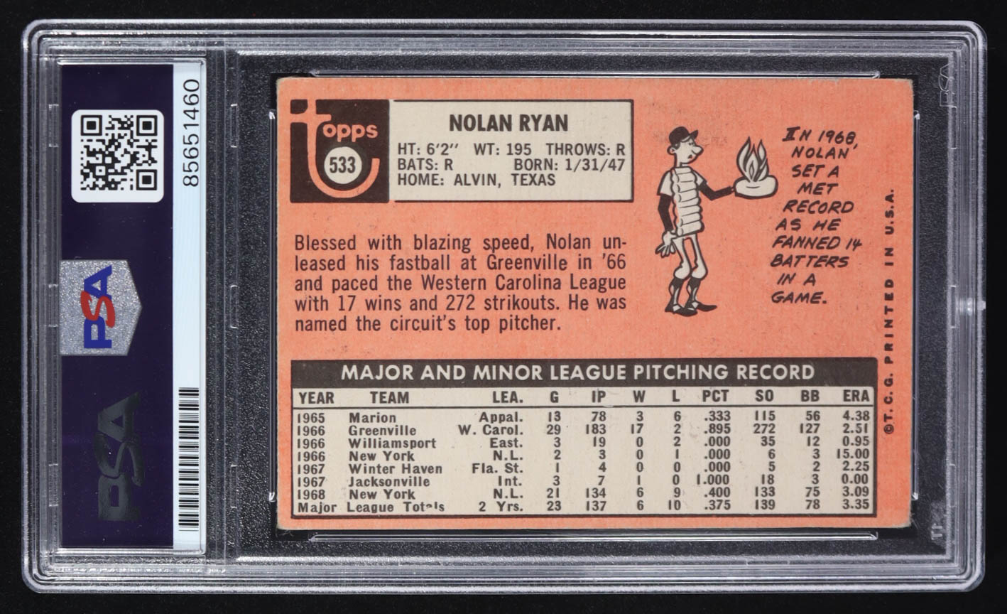 Nolan Ryan Signed 1969 Topps #533 Inscribed "7 No Hitters" (PSA | Auto Grade 10)