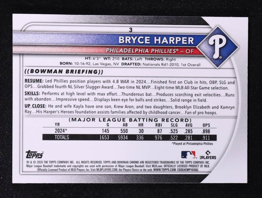 Bryce Harper 2025 Bowman Chrome Bowman Mega Box Blue Refractors #3 #29/150
