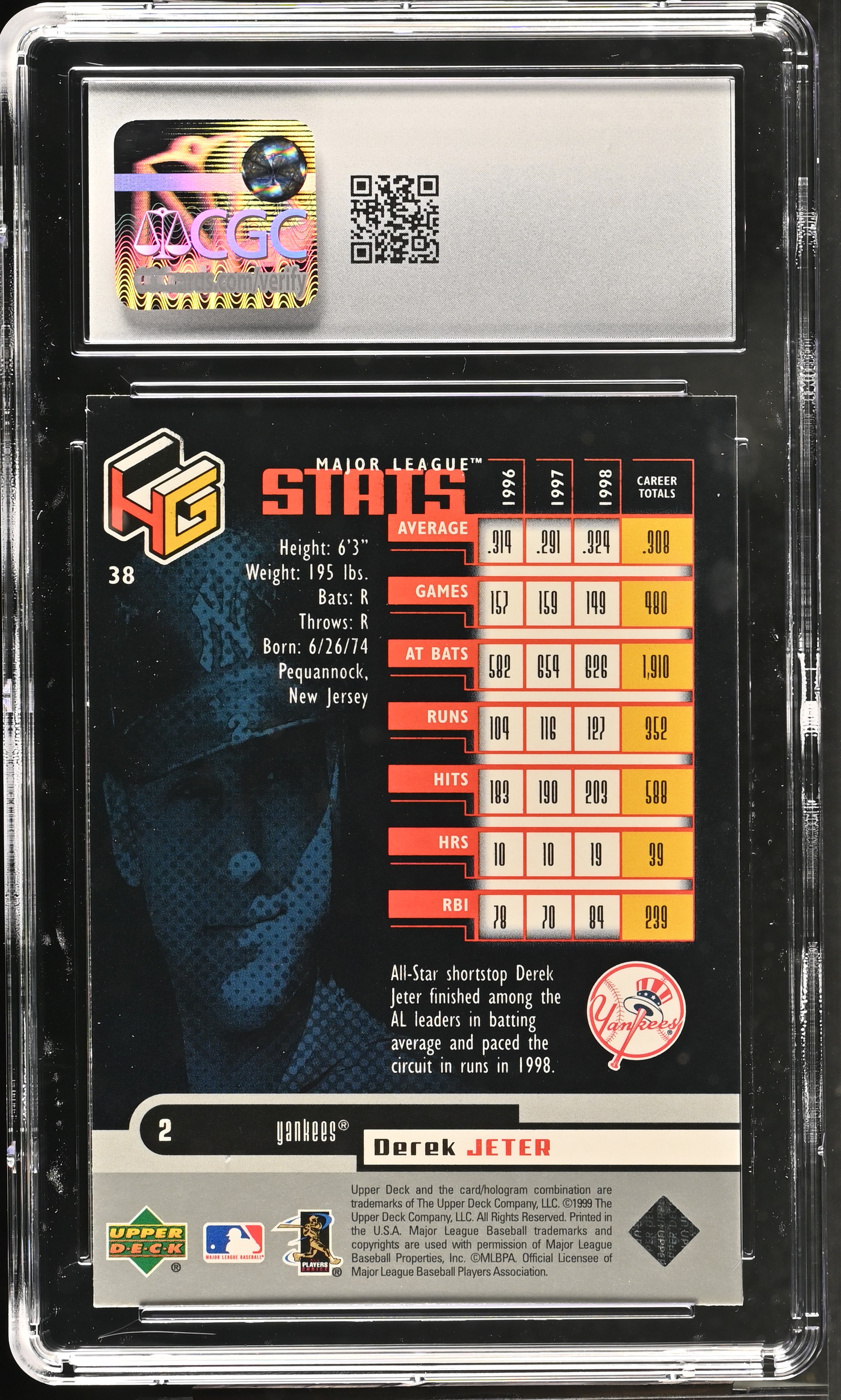 Derek Jeter 1999 Upper Deck HoloGrFX #38 (CGC 7)
