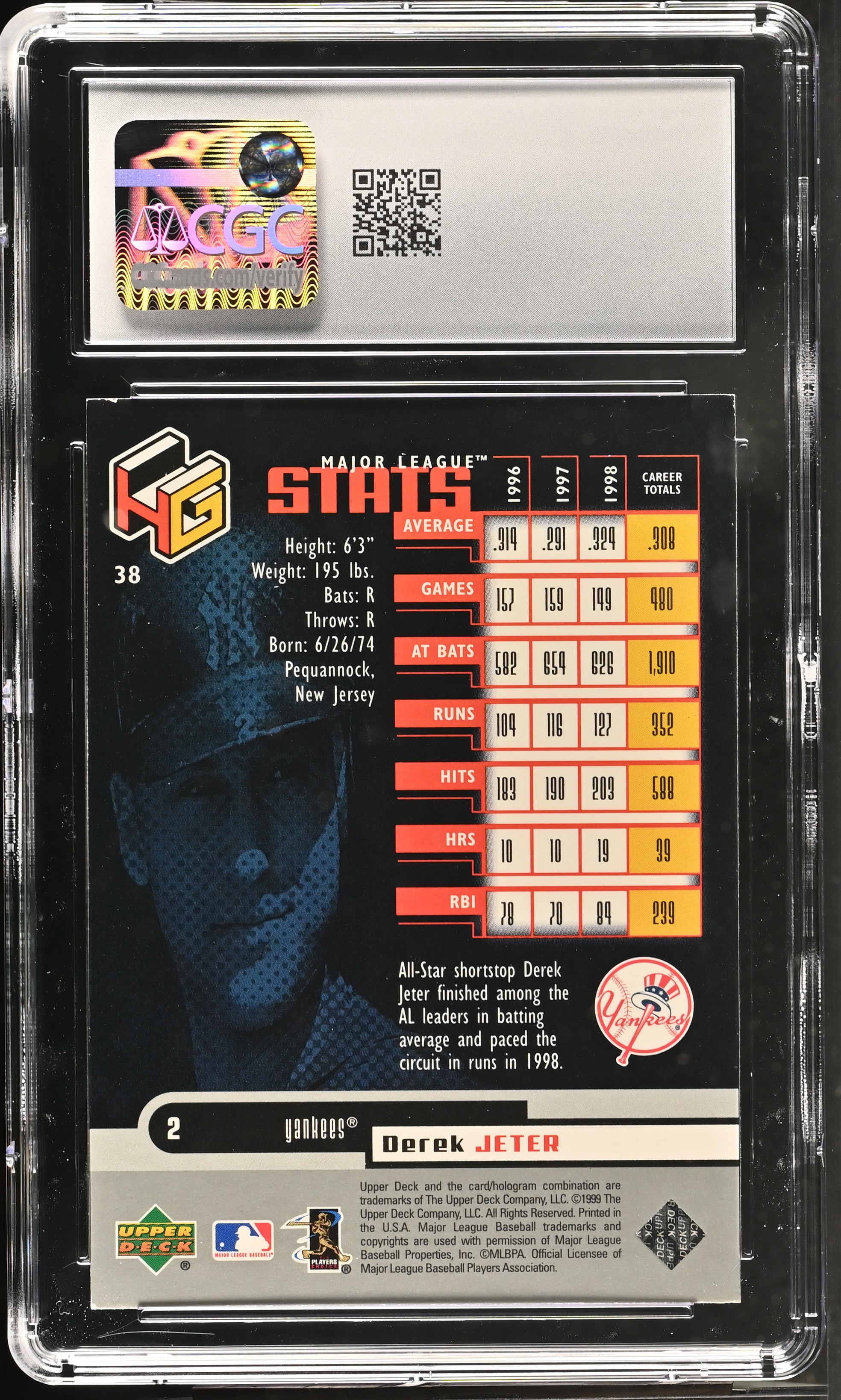 Derek Jeter 1999 Upper Deck HoloGrFX #38 (CGC 8.5)