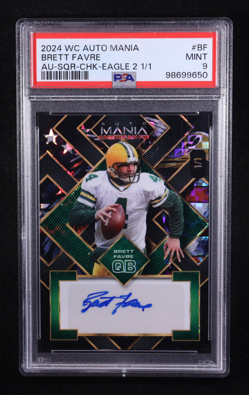 Brett Favre 2024 Wild Card Auto Mania Autographs Checkerboard Flag #AMASQBF #1/1 (PSA 9)