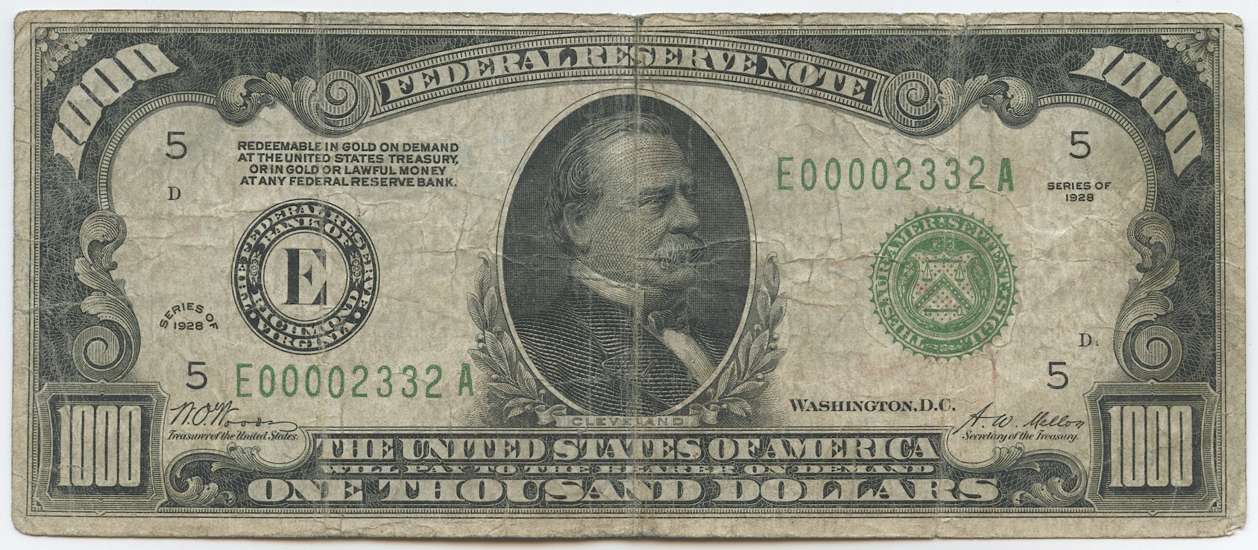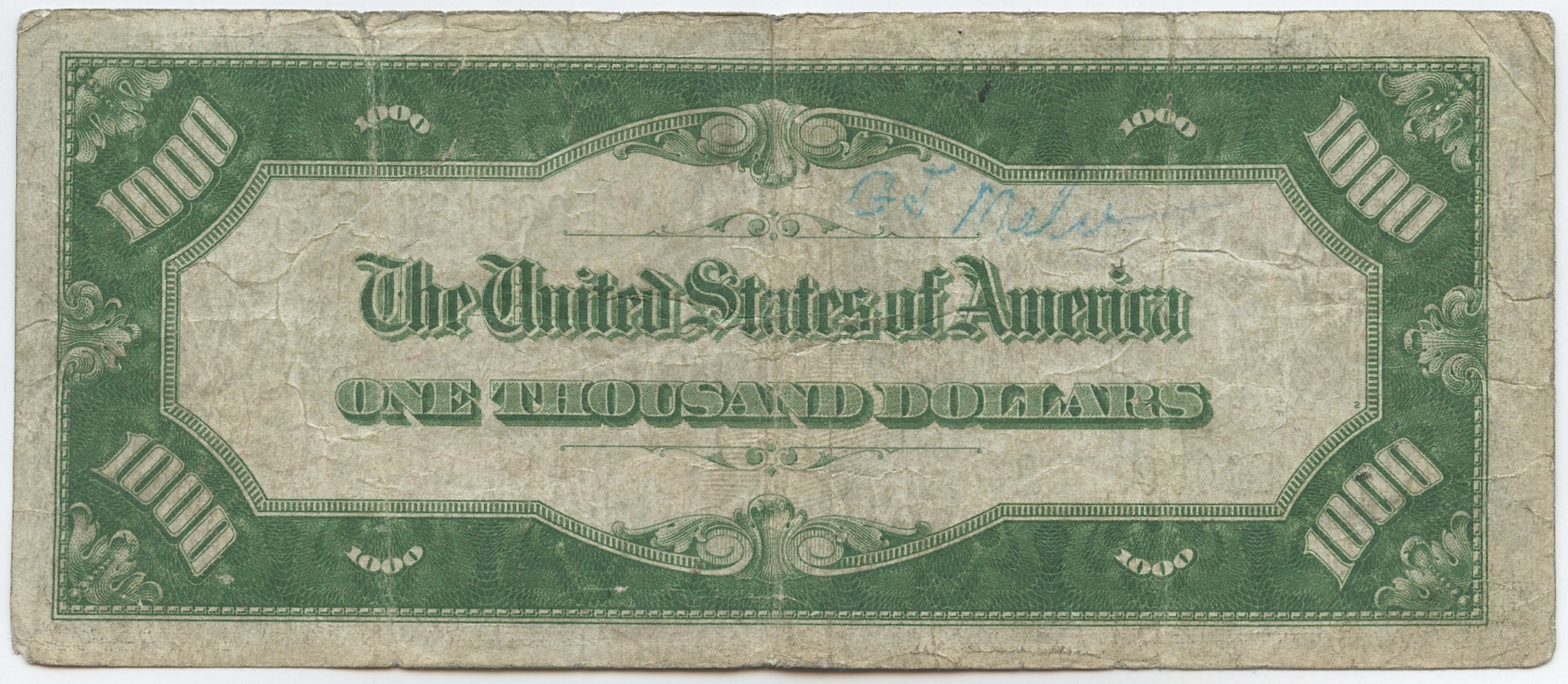1928 $1000 One Thousand Dollars Federal Reserve Note