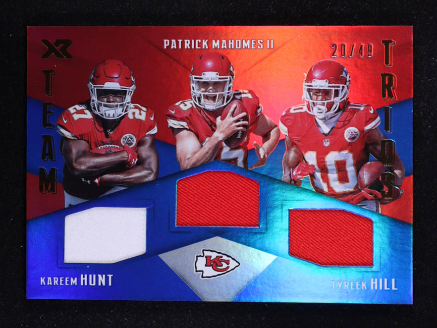 Patrick Mahomes II RC / Tyreek Hill / Kareem Hunt RC 2017 Panini XR Team Trios Materials Blue #5 #20/49