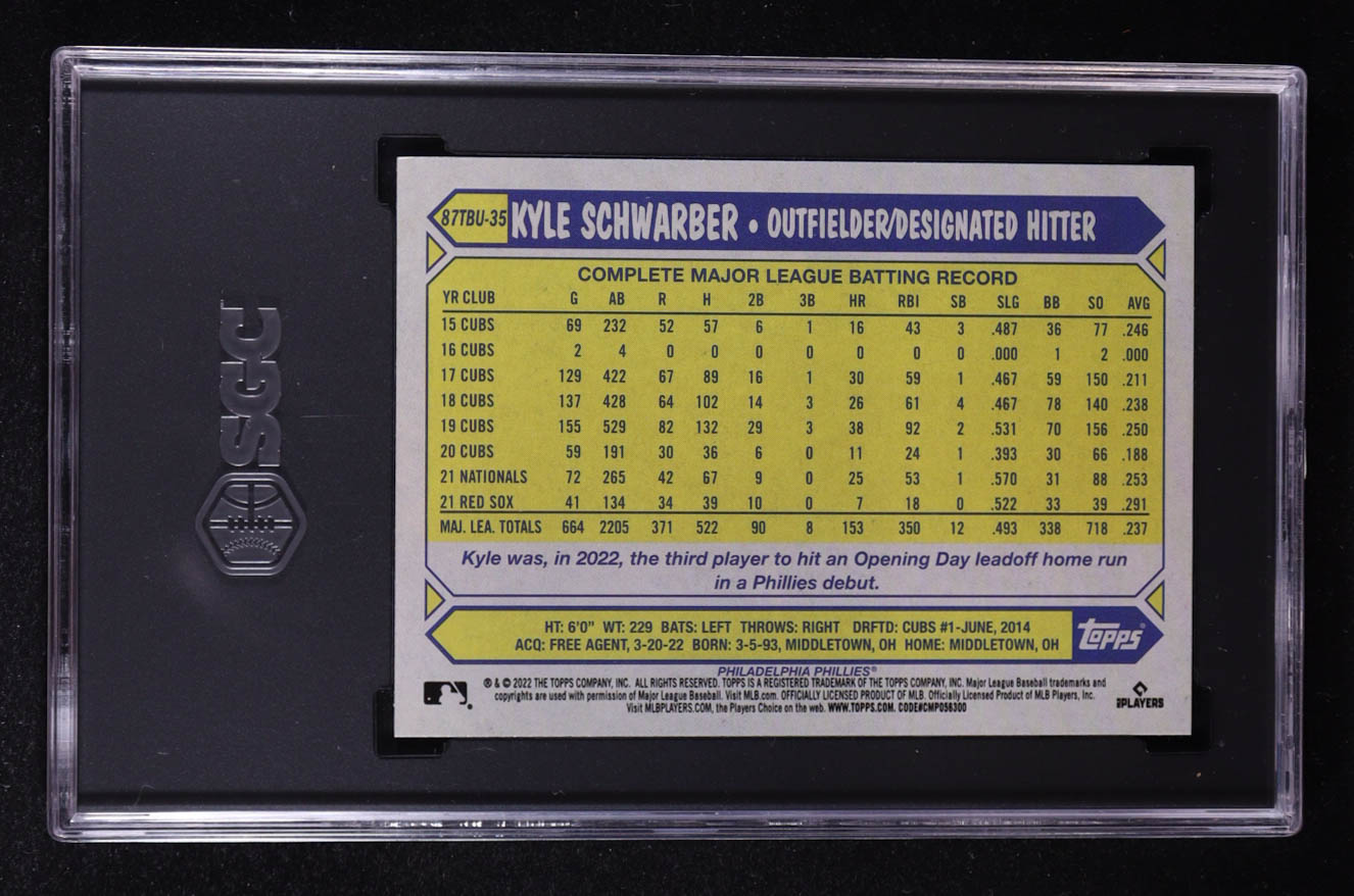 Kyle Schwarber 2022 Topps Update '87 Design 35th Anniversary #87TBU-35 (SGC 10)