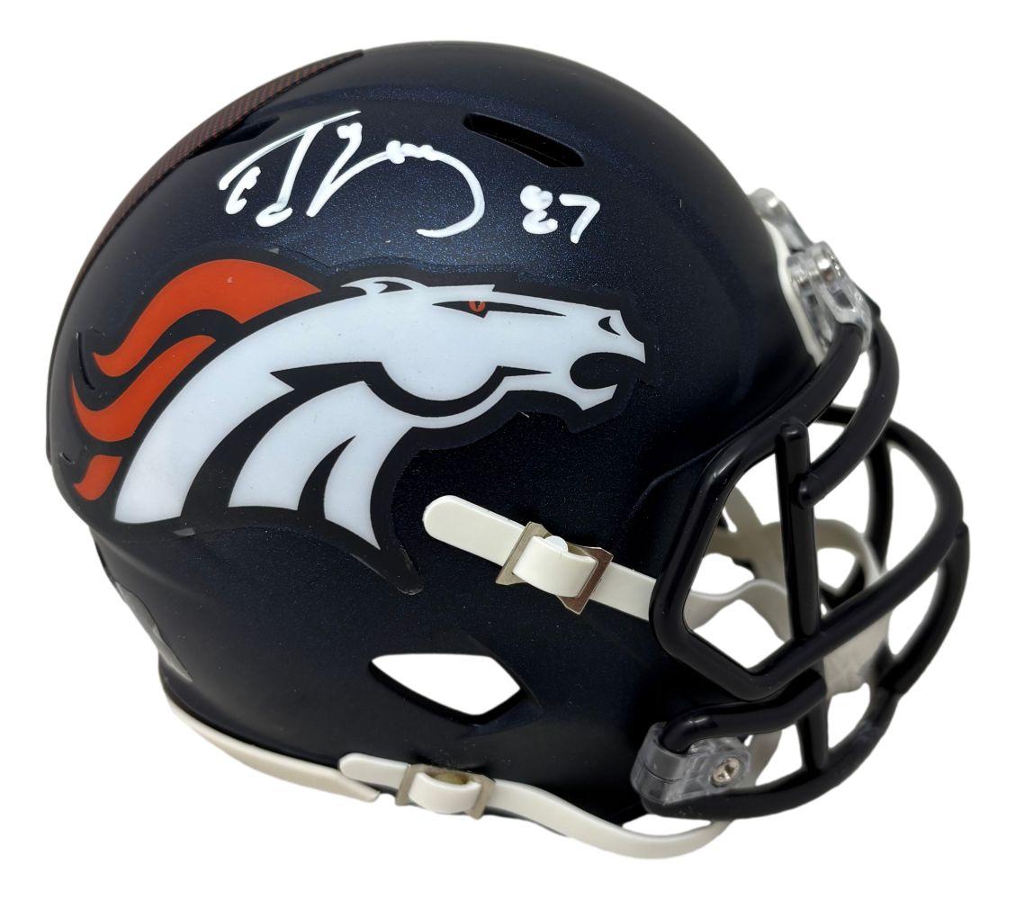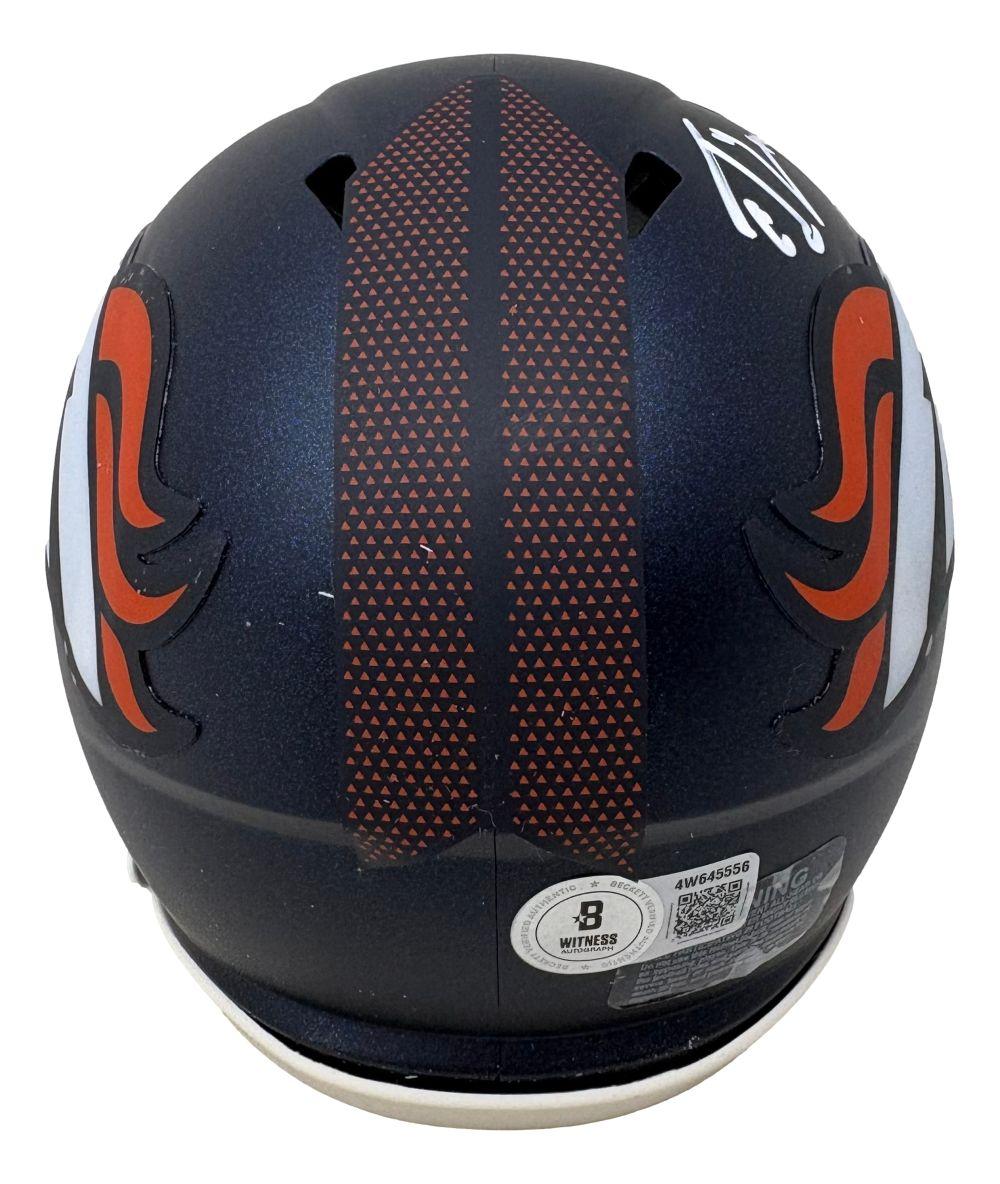 Riddell Denver Broncos Speed mini helmet has been hand-signed by Ed McCaffrey.