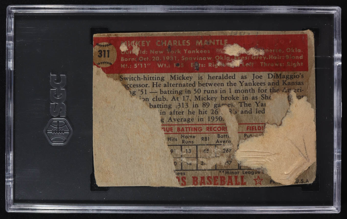 Mickey Mantle 1952 Topps #311 RC (SGC Authentic) (Altered)
