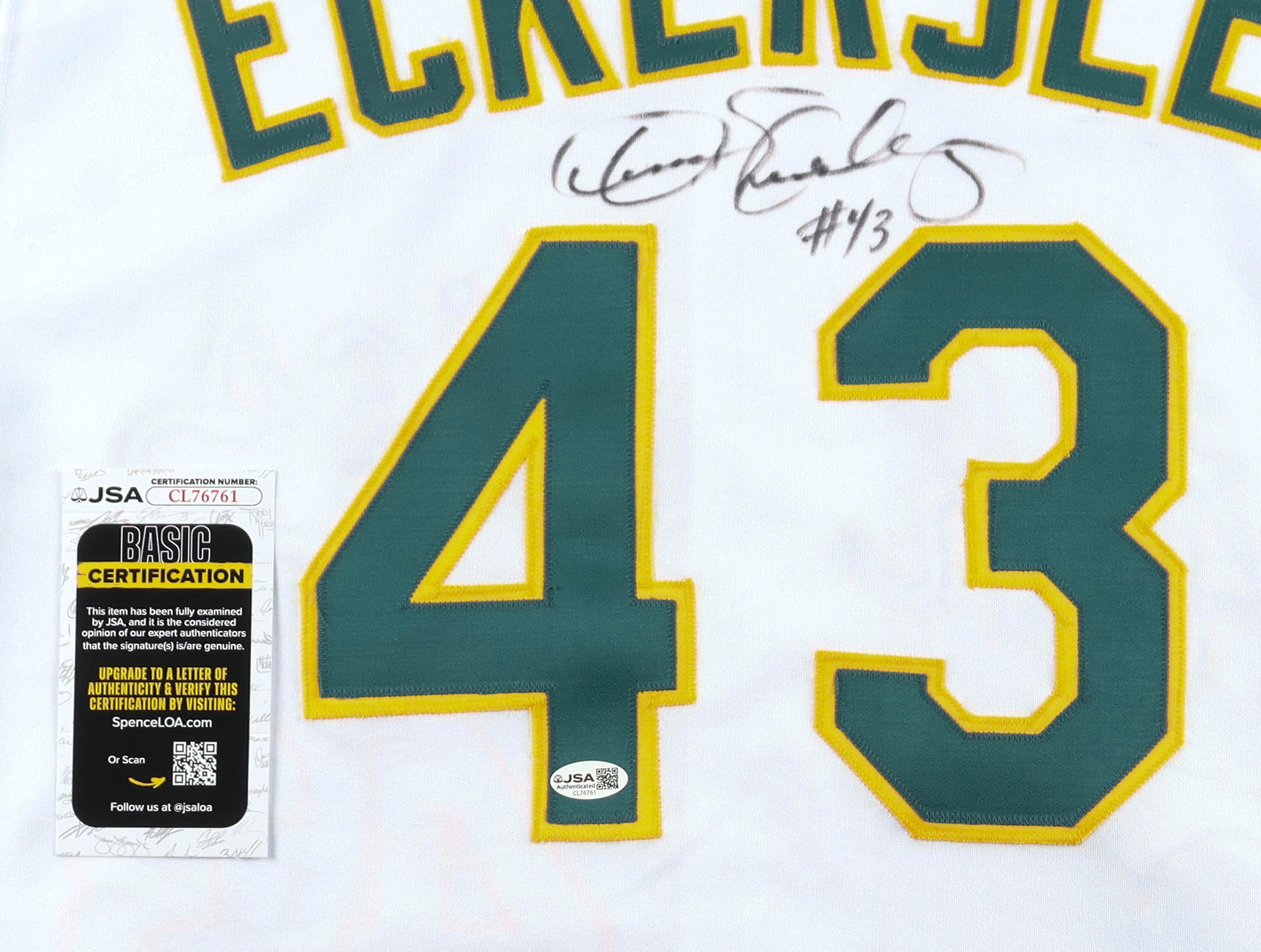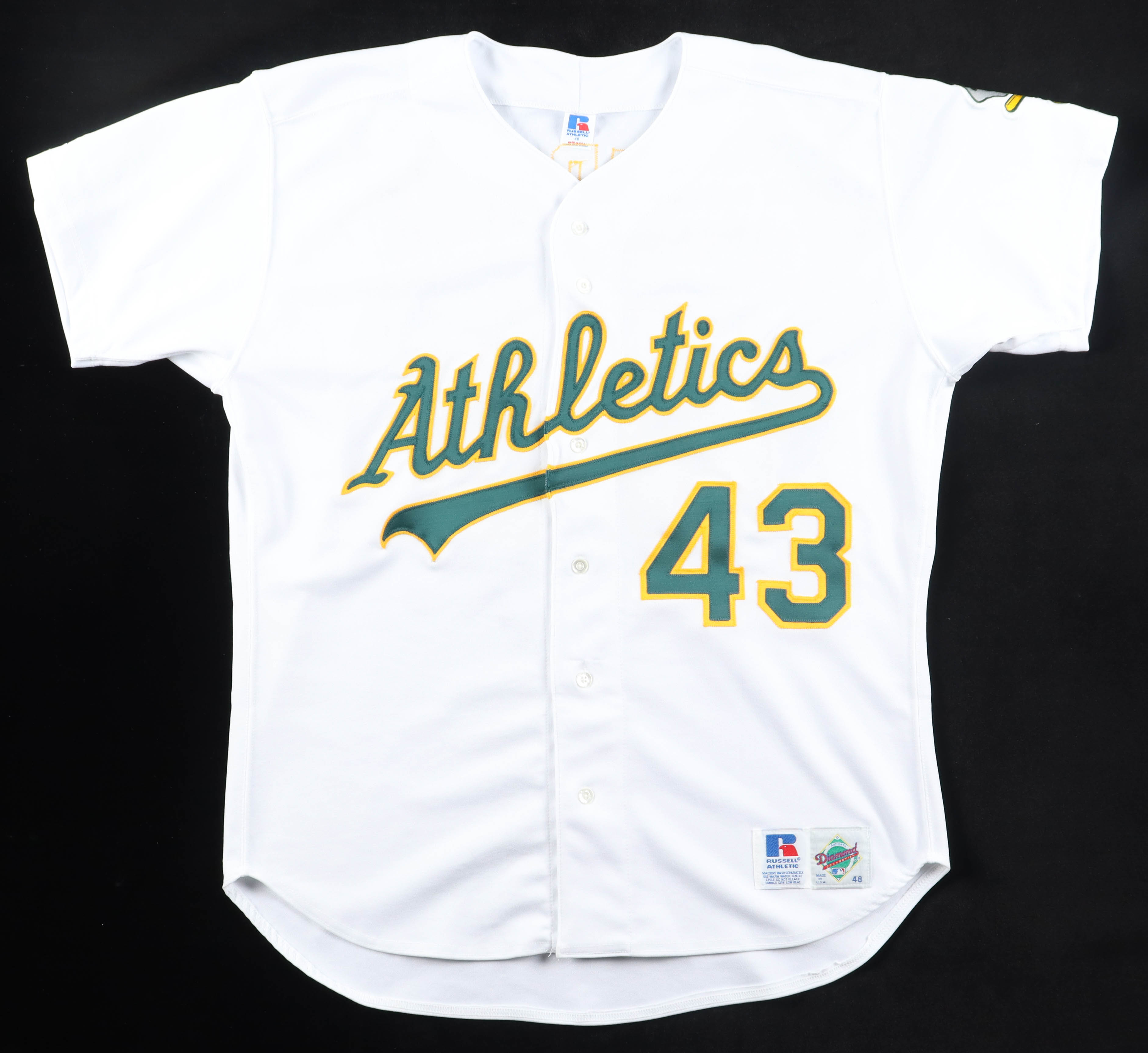Russell Athletic jersey with everything sewn on, size 48. Hand-signed by Dennis Eckersley (Oakland Athletics, HOF).