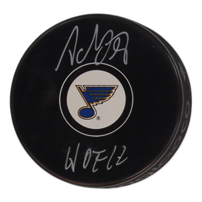 St. Louis Blues Logo Hockey Puck. Hand-signed and inscribed by Adam Oates (HOF).