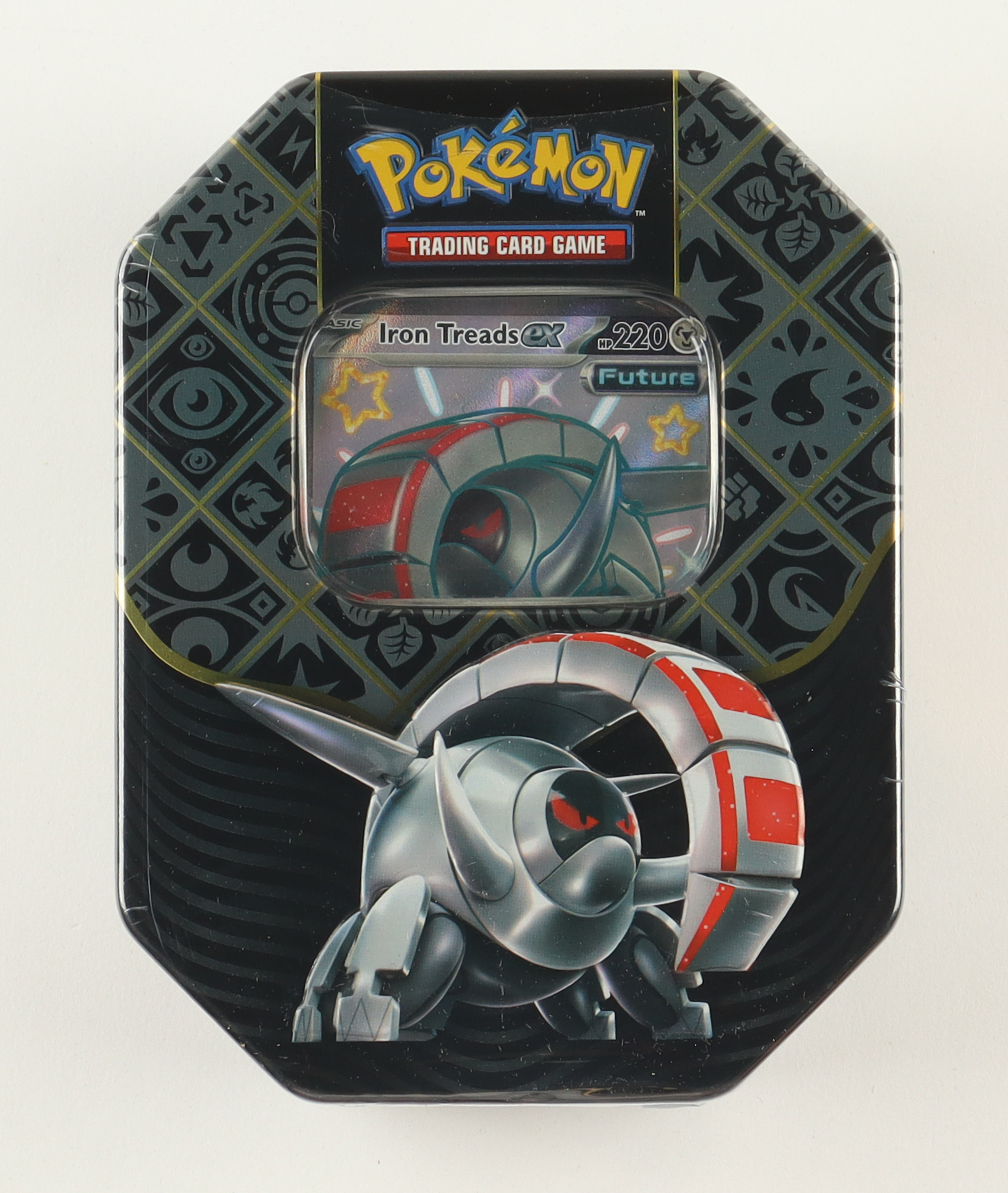 Behold the breathtaking power of Shiny Pokémon ex who transcend the boundaries of time and type! With this tin, choose the iron-clad determination of Iron Treads ex as a Future Pokémon, then discover even more awesome cards in Scarlet & Violet—Paldean Fates booster packs!