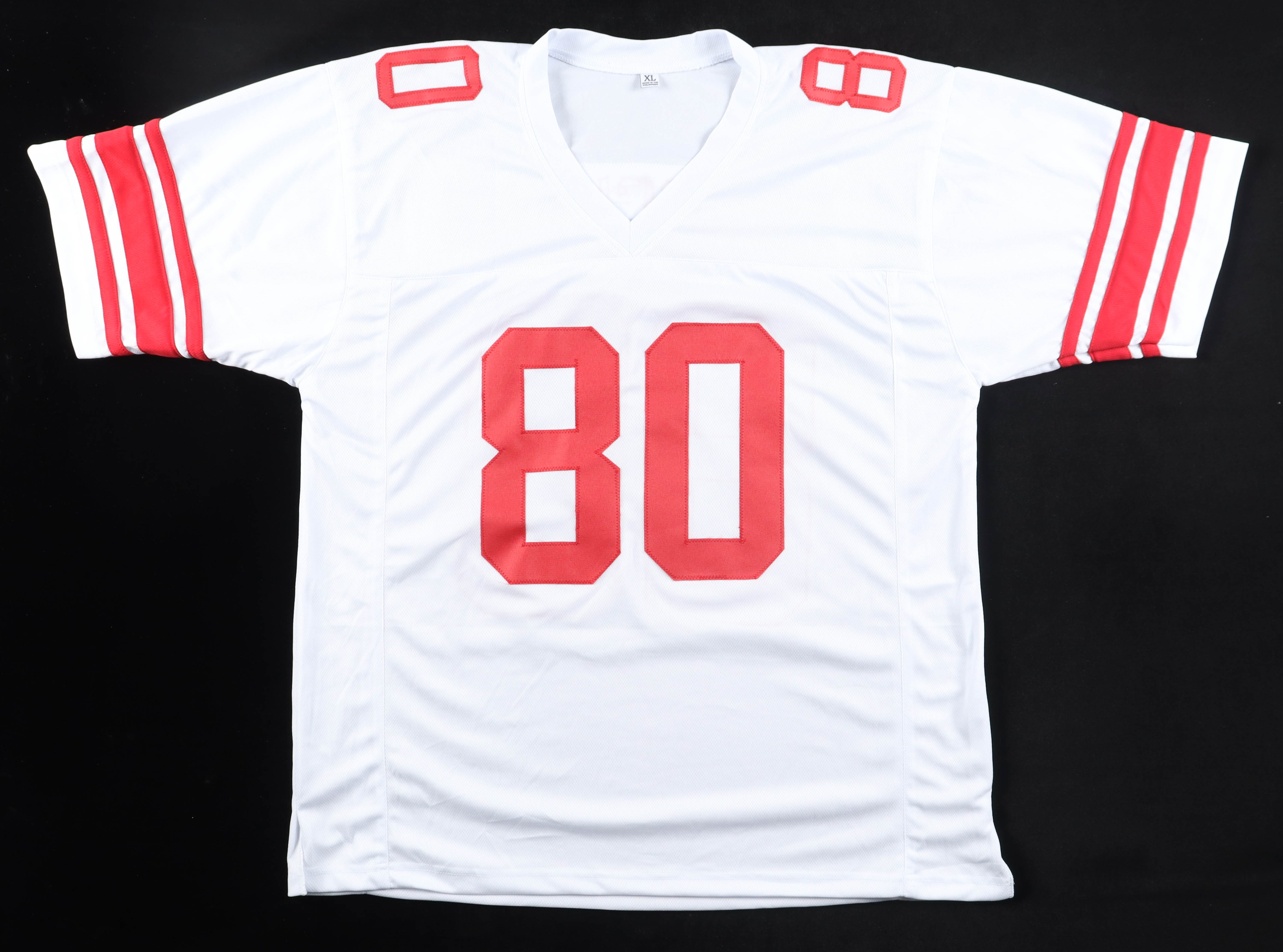 Custom jersey with everything sewn on, size XL. Hand-signed by Jeremy Shockey.