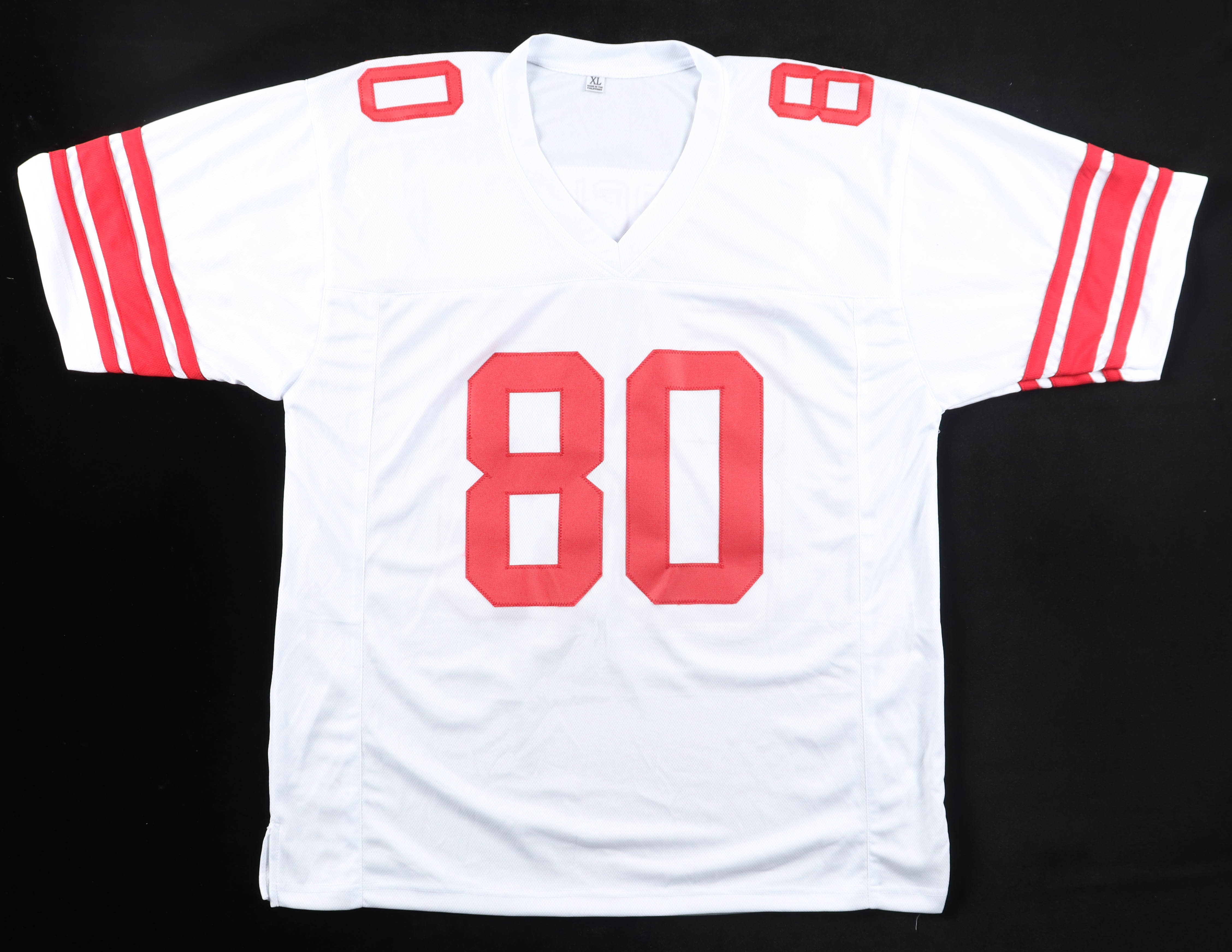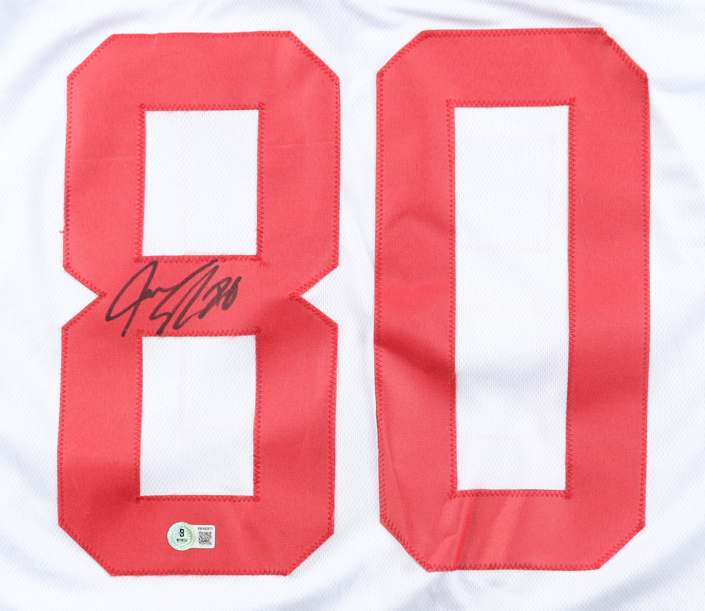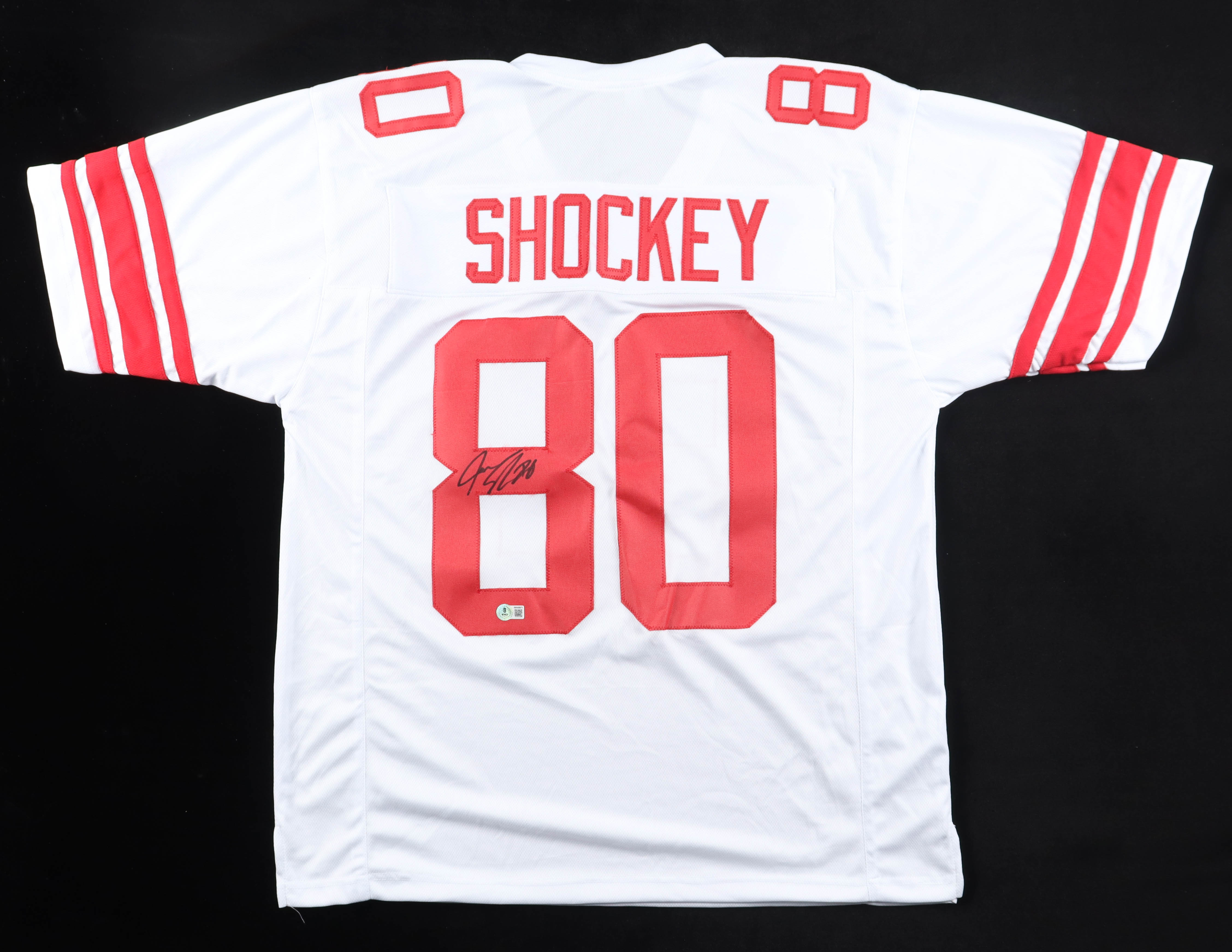 Custom jersey with everything sewn on, size XL. Hand-signed by Jeremy Shockey.