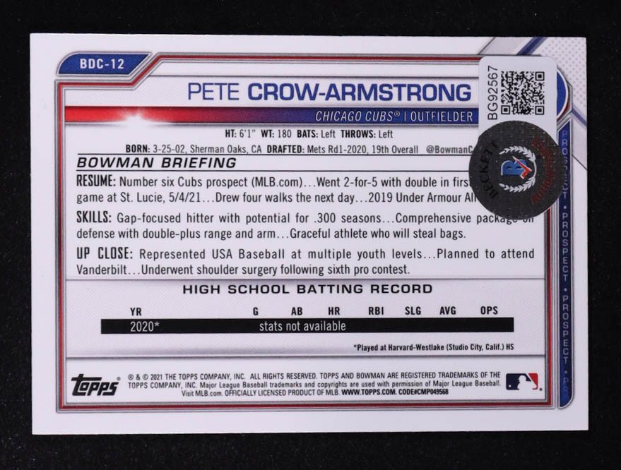 Pete Crow-Armstrong 2025 Bowman Draft Chrome Auto #BDC-12 RC