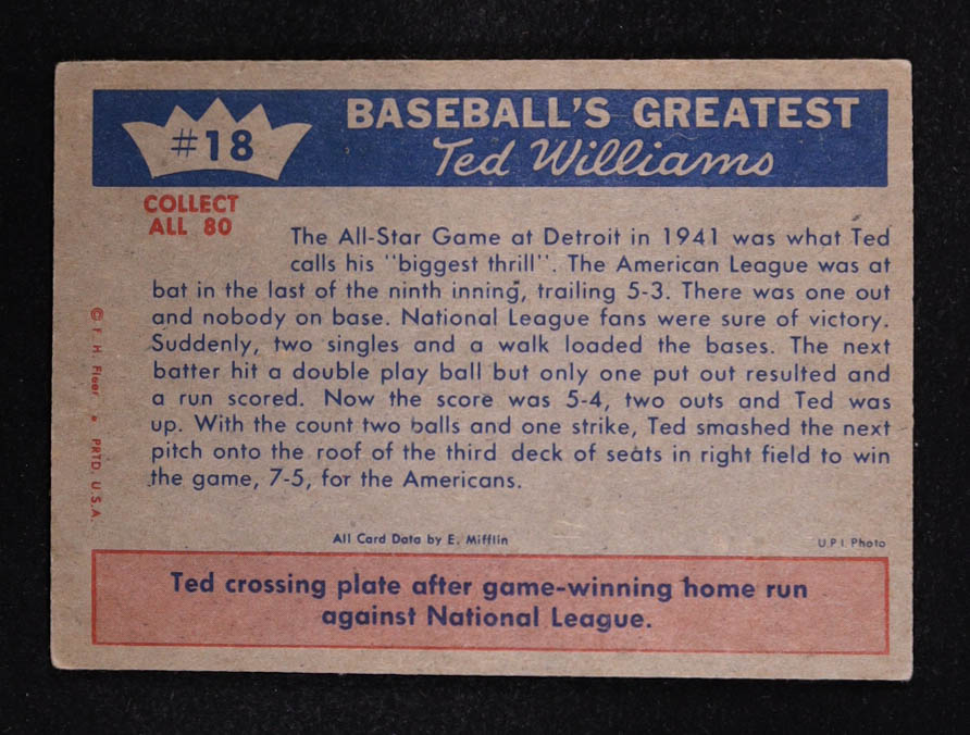 Ted Williams 1959 Fleer Ted Williams #18 All Star Hero