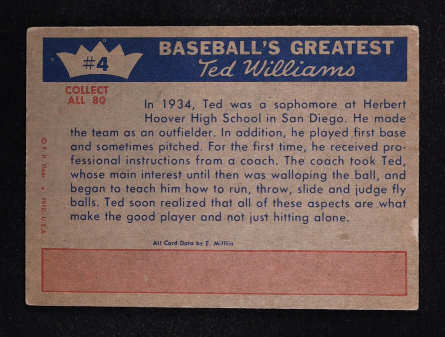 Ted Williams 1959 Fleer Ted Williams #4 Ted Learns The Fine Points