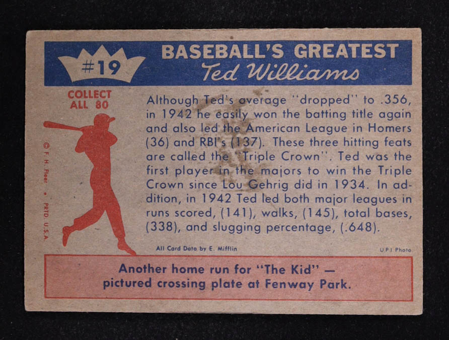 Ted Williams 1959 Fleer Ted Williams #19 Ted Wins Triple Crown
