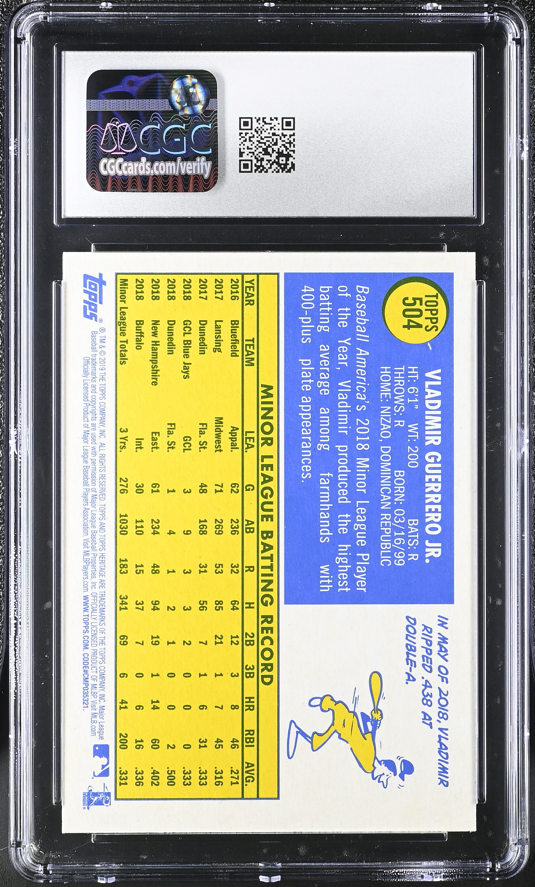 Vladimir Guerrero Jr. 2019 Topps Heritage #504 RC (CGC 9)