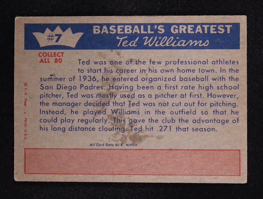 Ted Williams 1959 Fleer Ted Williams #7 From Mound To Plate