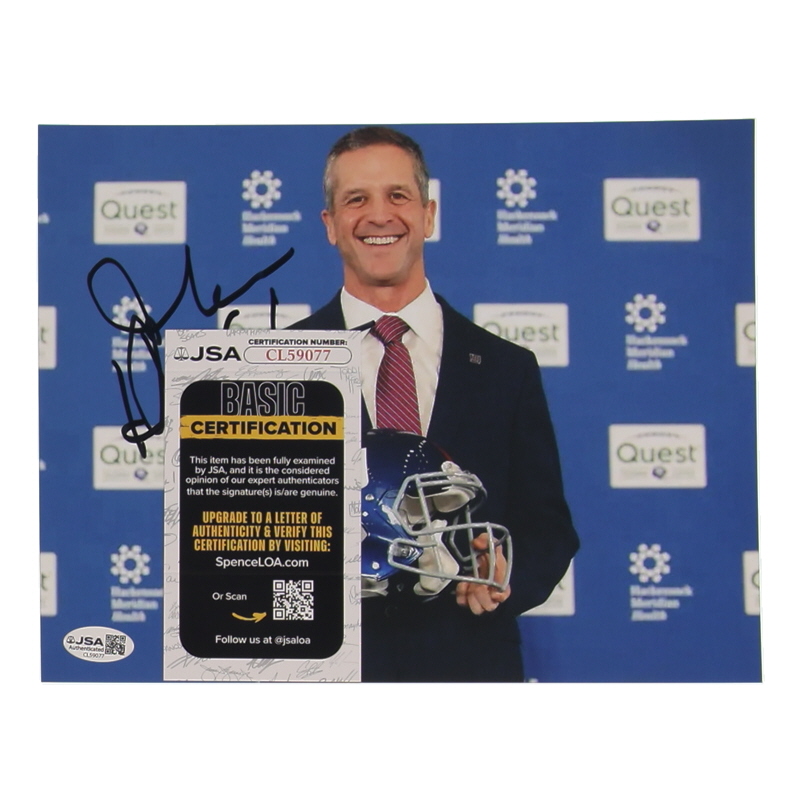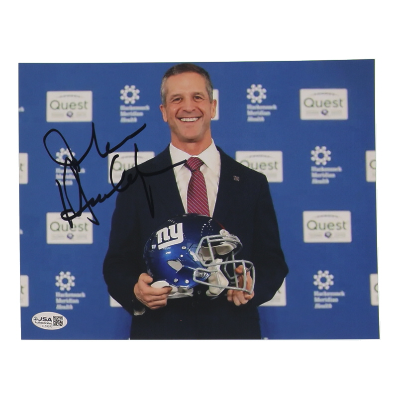 Photo measures 8x10 in size. Hand-signed by John Harbaugh (New York Giants).