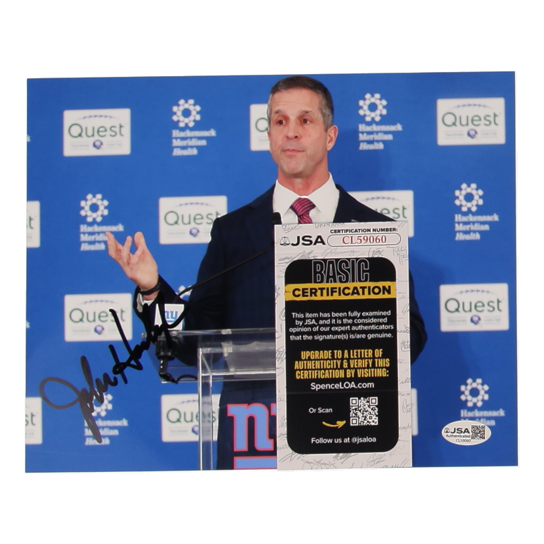 John Harbaugh Signed Giants 8x10 Photo (JSA)