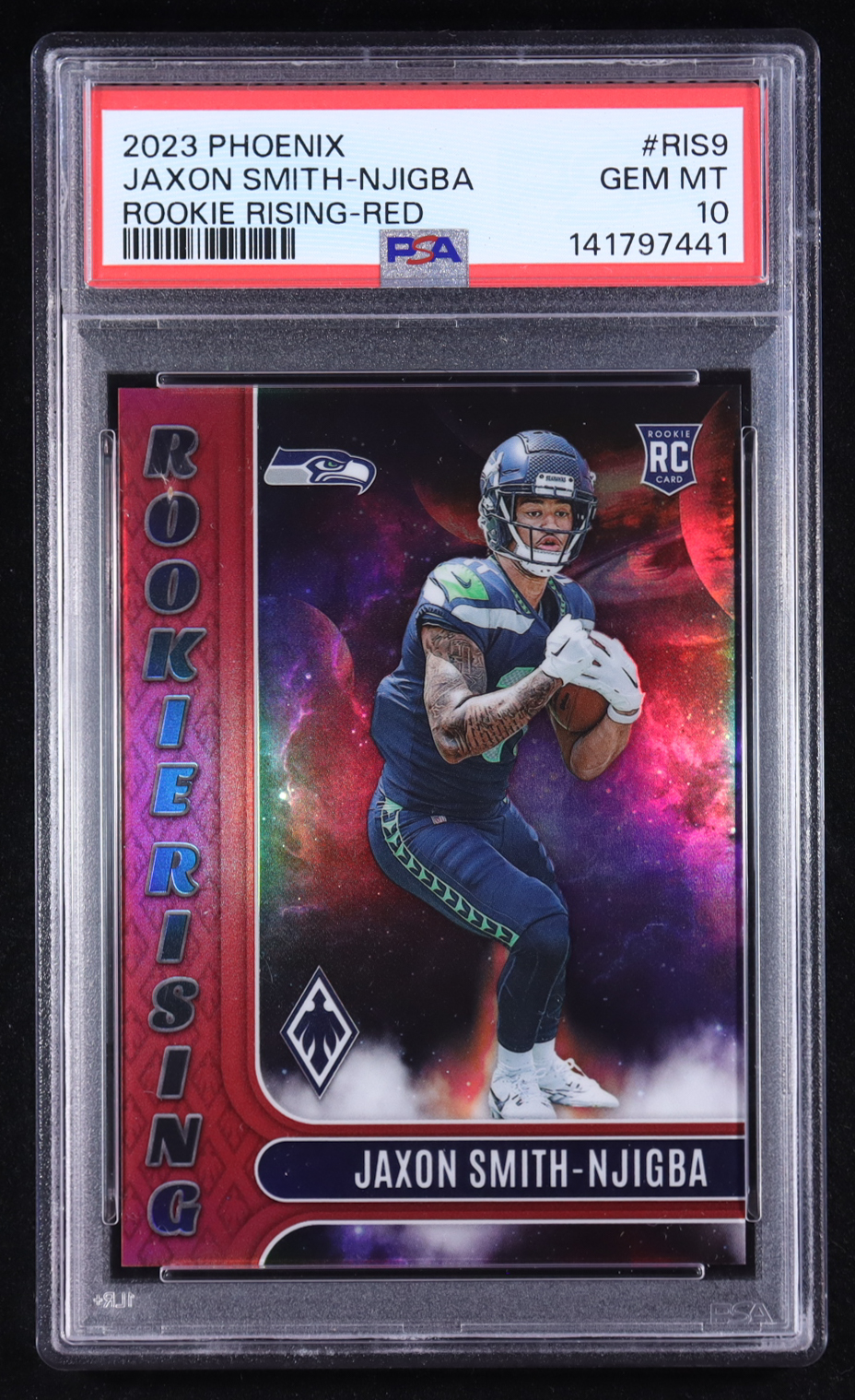 Jaxon Smith-Njigba 2023 Panini Phoenix Rookie Rising Red #9 RC #159/199 (PSA 10)