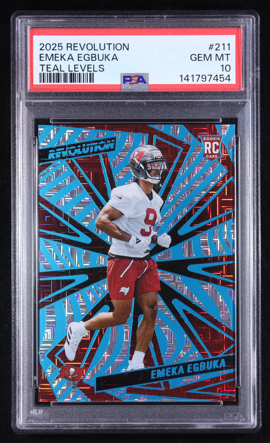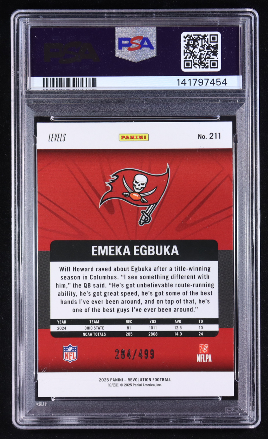 Emeka Egbuka 2025 Panini Revolution Teal Levels #211 RC #284/499 (PSA 10)