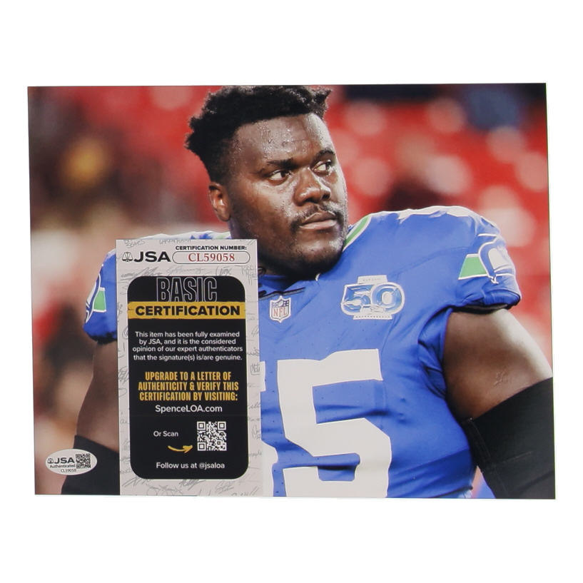 Photo measures 8x10 in size. Hand-signed by Olu Oluwatimi (Seattle Seahawks).