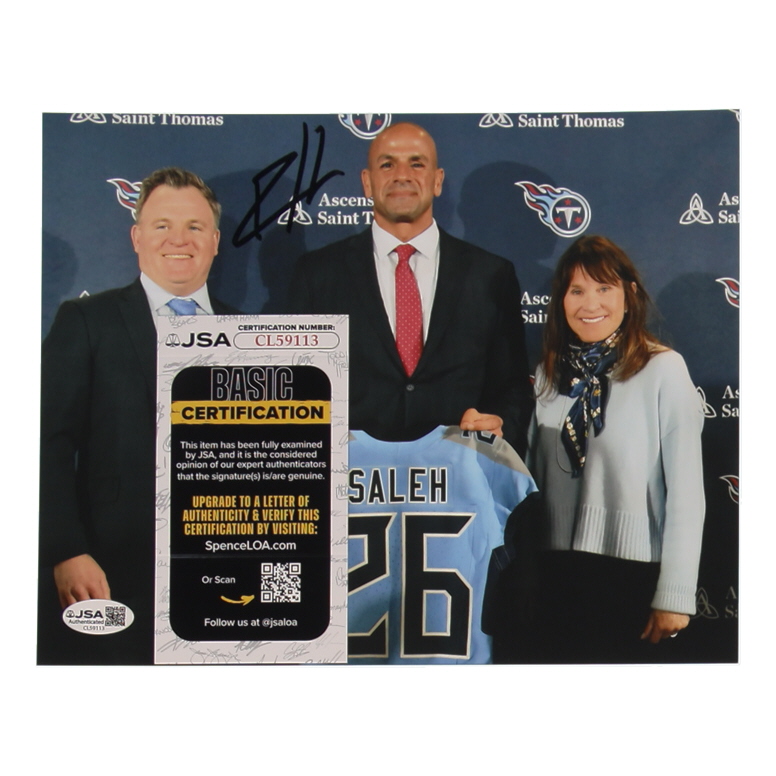 Photograph measures 8" x 10" in size. Hand-signed by Robert Saleh (Tennessee Titans).