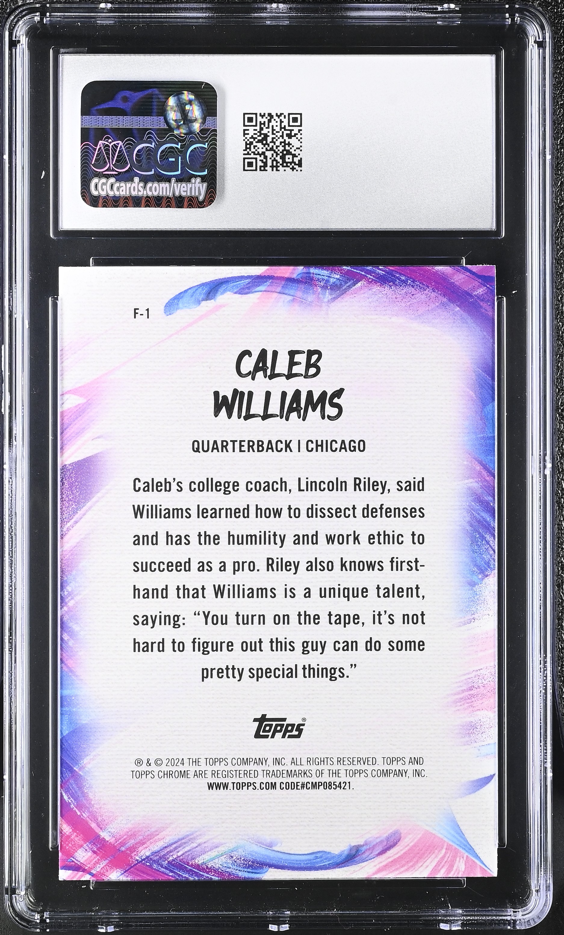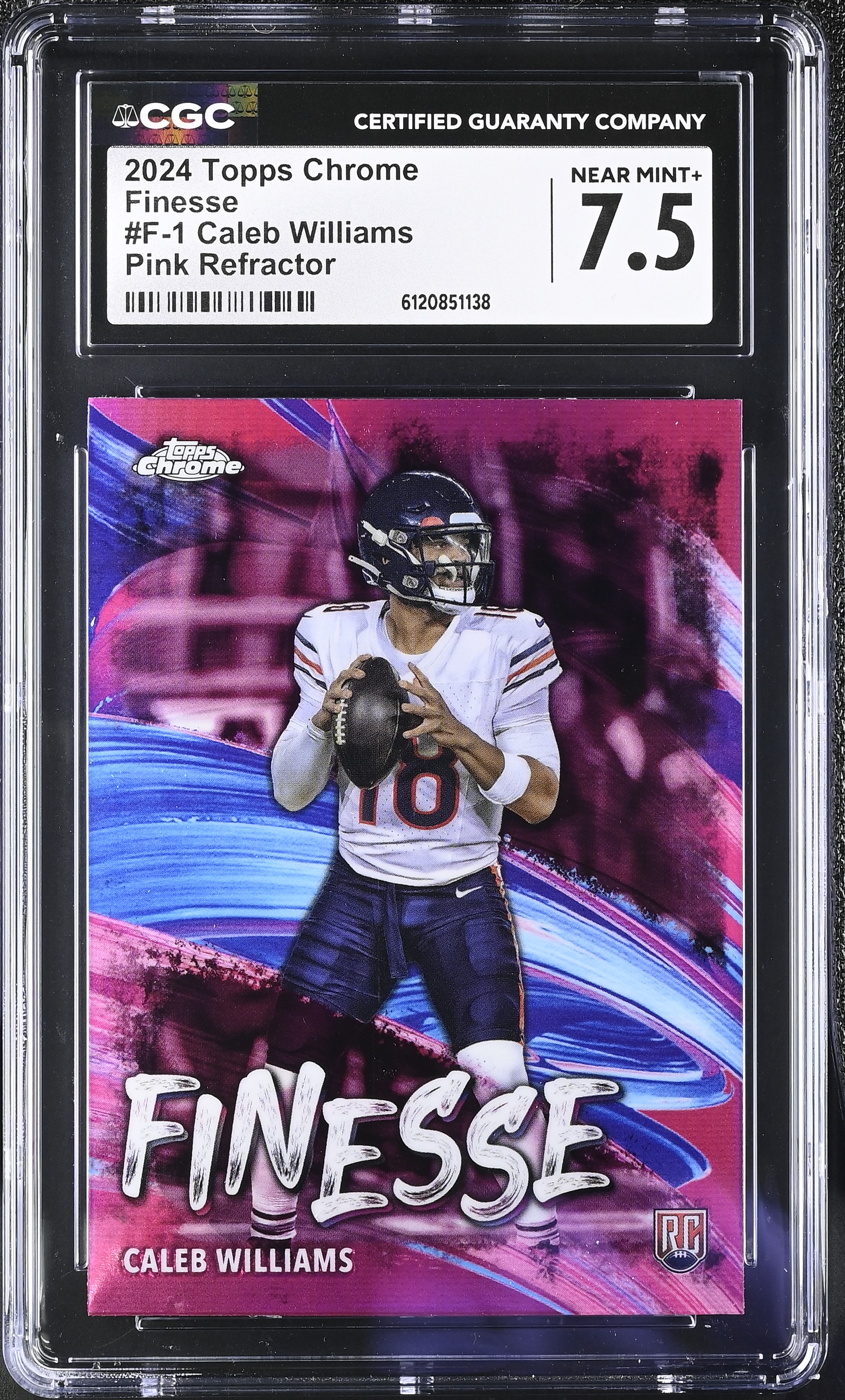 Caleb Williams 2024 Topps Chrome Finesse Pink Refractor #F1 RC (CGC 7.5)