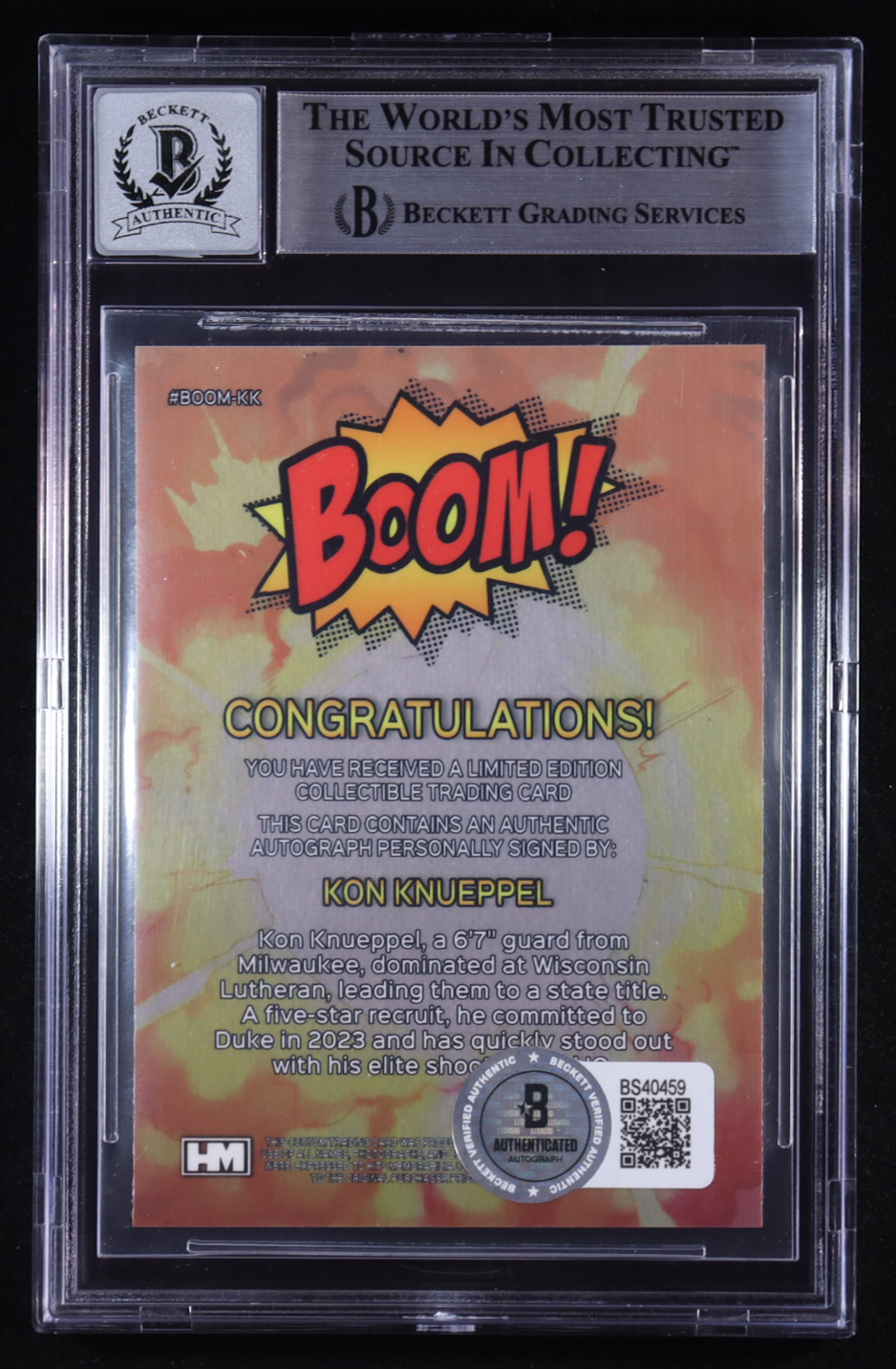 Kon Knueppel Signed Boom! Custom Trading Card #BOOM-KK RC (BGS | Autograph Graded BGS 10)