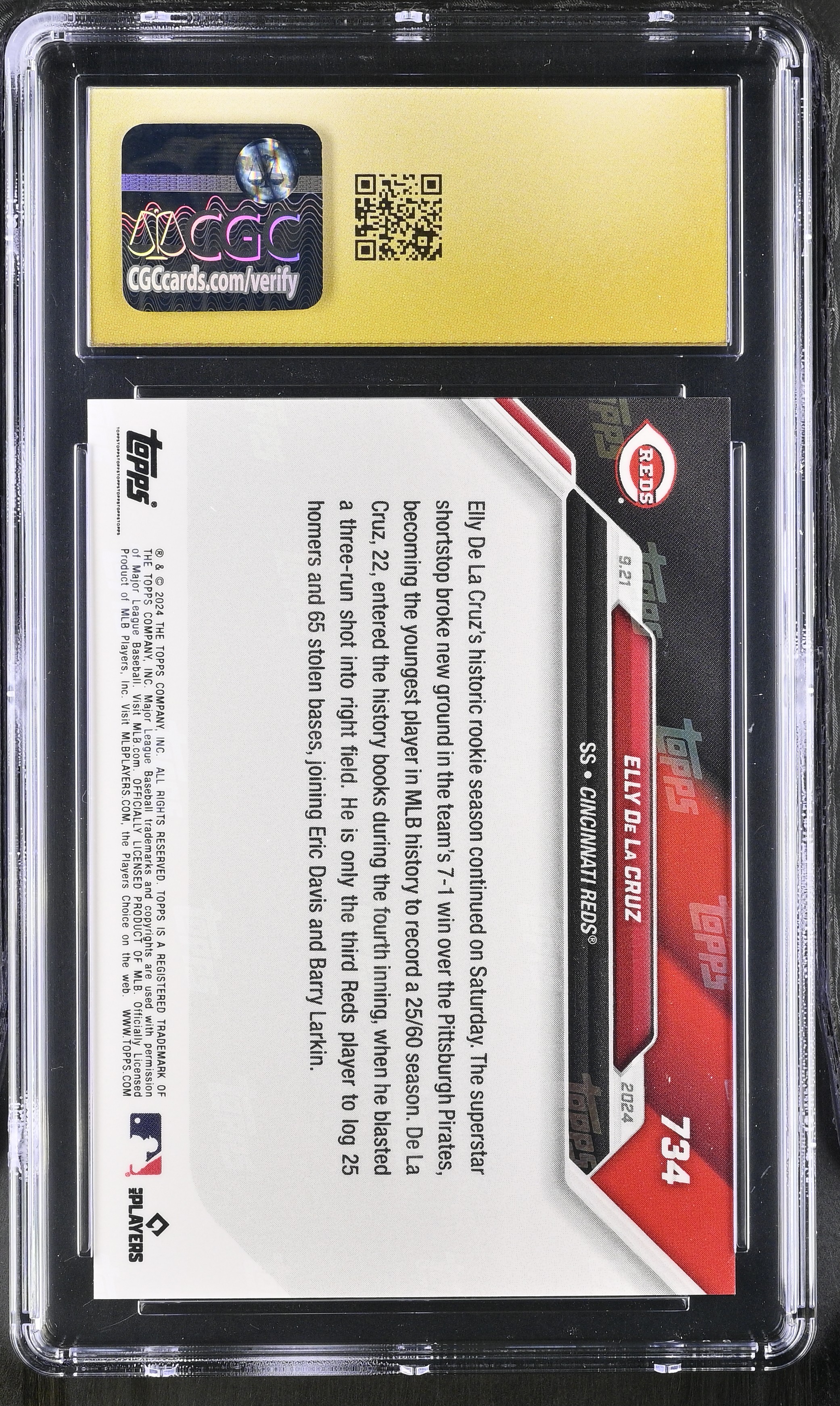 Elly De La Cruz 2024 Topps Now #734 RC (CGC PRISTINE 10 | Black Label)
