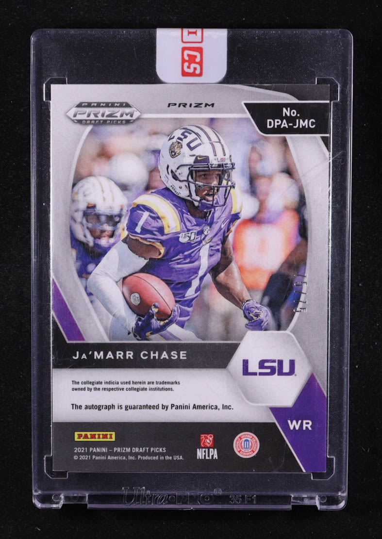 Ja'Marr Chase 2021 Panini Prizm Draft Picks Autographs Prizms Blue Ice #17 EXCH #75/75 RC