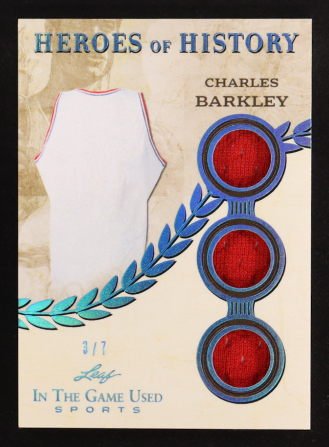 Charles Barkley 2025 Leaf ITG Used Sports Heroes Of History Memorabilia Spectrum Platinum Blue Holofoil #HH14 #3/7