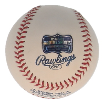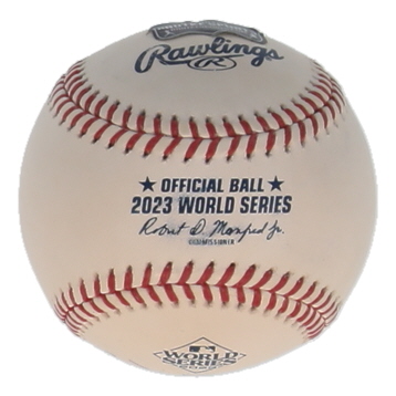 Rawlings Official 2023 World Series Logo baseball. Hand-signed and inscribed by Will Smith (Houston Astros). Please note the inscription is smudged.