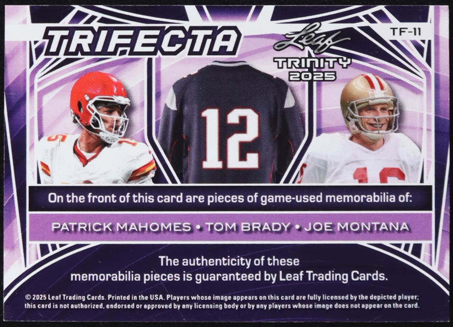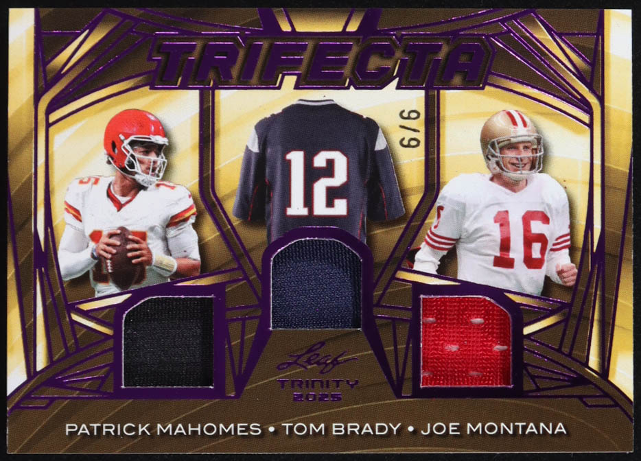 Patrick Mahomes / Tom Brady / Joe Montana 2025 Leaf Trinity Trifecta Magenta #TF-11 #6/6