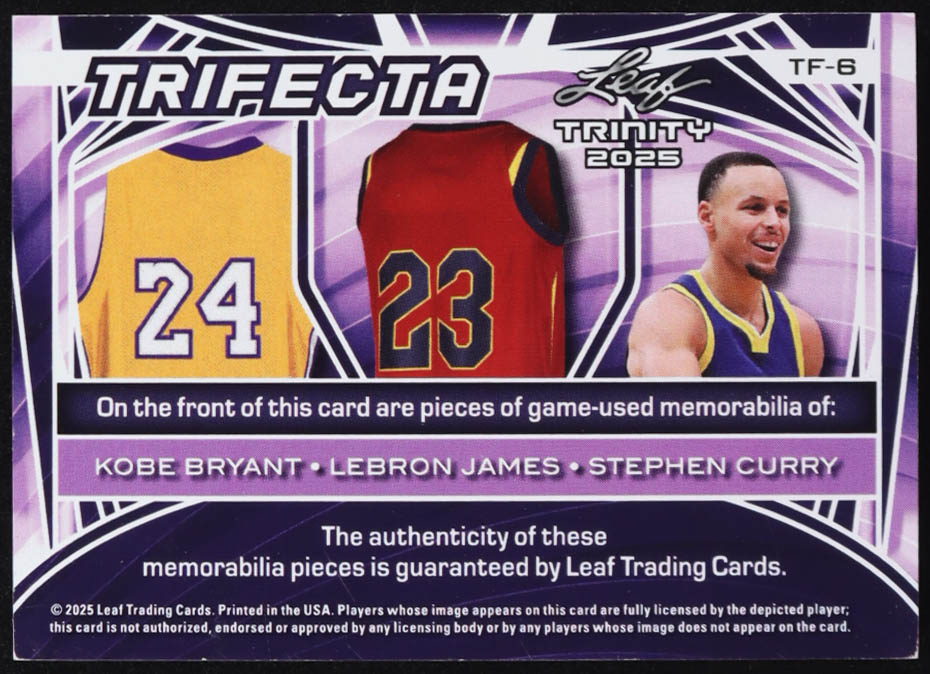 Kobe Bryant / LeBron James / Stephen Curry 2025 Leaf Trinity Trifecta Blue #TF6 #29/30