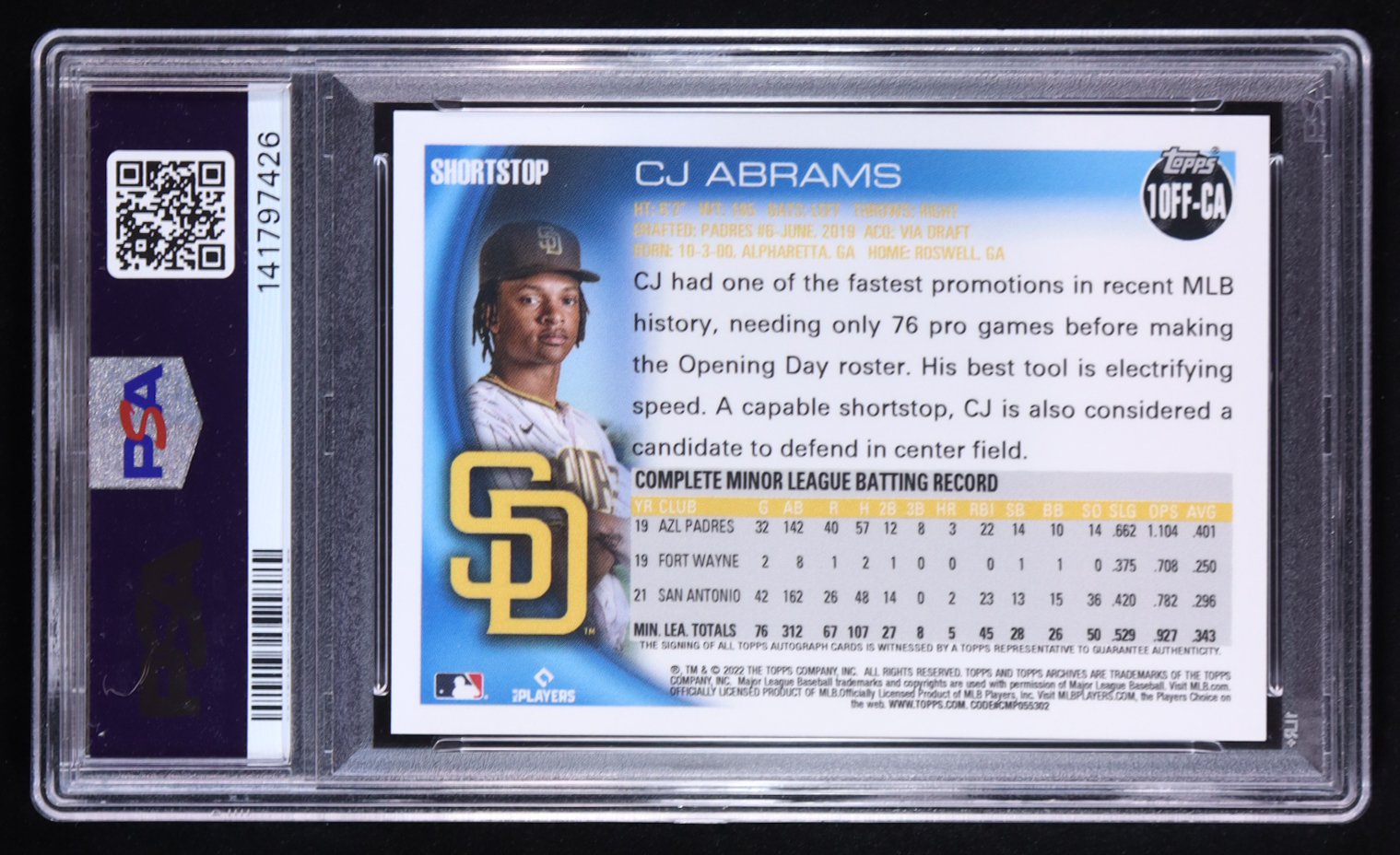 CJ Abrams 2022 Topps Archives '10 Fan Favorites Autographs #10FFCA RC (PSA 10)