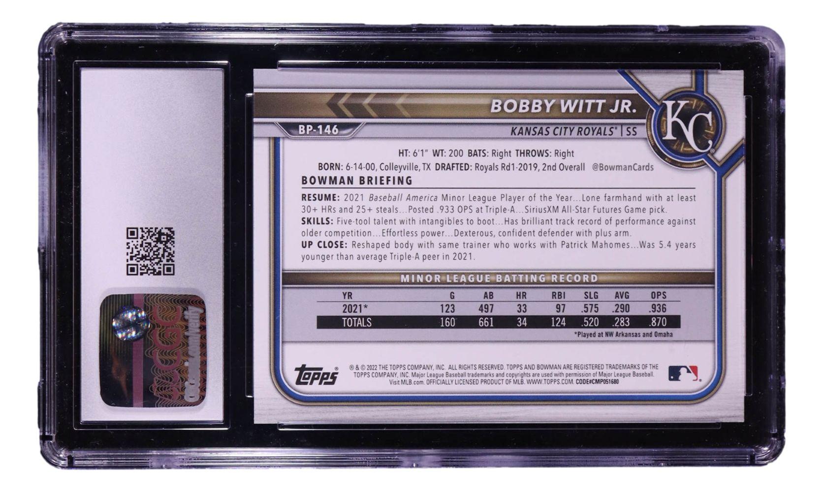 Bobby Witt Jr. 2022 Bowman Prospects #BP146 RC (CGC 10)